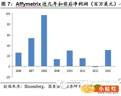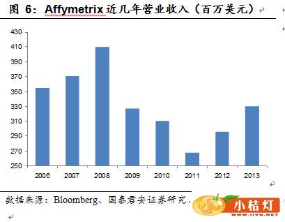 比较典型例子的是美国基因芯片龙头企业Affymetrix,自2009年受新一代测序技术冲击,业绩出现明显下滑。
