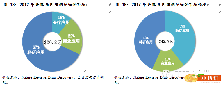 受益于测序服务的迅速增长,中国的基因测序产业成全球发展速度最快的地区之一,据Markets and markets预计,2012-2017年间CAGR达到20%~25%。