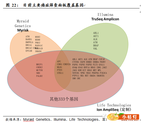 自从美国最高法院判决任何人不能为具体的DNA片段申请专利,使得美国基因检测公司巨头Myriad Genetics已经注册的两个与乳腺癌和卵巢癌有关的基因(BRCA1和BRCA2)专利无效,使其今后的业务受到严重威胁,该公司随后推出了整合了25个肿瘤易感基因的癌症筛查面板(cancer panel)“Myrisk”,Life Technologies和Illumina也相继推出了基于新一代测序技术的癌症筛查面板,但这些产品目前尚未通过FDA认证。