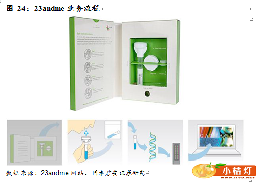 近几年兴起的直接面向用户(direct to consumer)的个人DNA信息咨询产业其实是基因检测市场化产物,基本模式是利用互联网和快递寄送,将检测试剂盒送至用户手中,再由其将采集的唾液及送回公司,并从中提取用户的DNA,检测结果也可直接从网上查询获取。