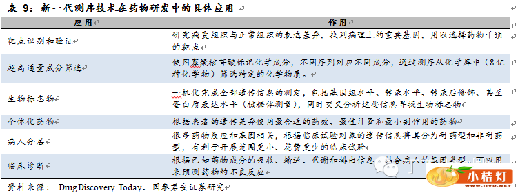 当然,新一代测序技术在药物研发上的应用还属初级阶段,同样面临着数据存储、解读以及标准化的问题。但毫无疑问,新一代测序技术的出现对于药物研发具有里程碑的意义,现有的应用贯穿了早期研发到临床实验的各个阶段。可以预见,随着未来测序成本的降低,大数据分析能力增强,基因诊断和个体化治疗的不断发展,越来越多效率更高、副作用更小、更为特异的新药将会不断涌现。