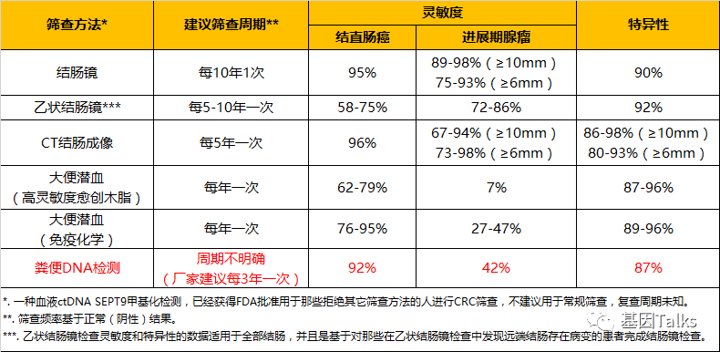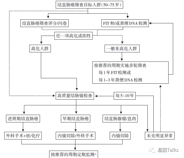 在我国,85%以上的结直肠癌发现即已属晚期,即使经过手术、放化疗、靶向治疗等综合治疗,患者的5年生存率仍明显低于40%;相反,早期结直肠癌治疗后5年生存率可超过95%,甚至可以完全治愈。1 通过早期筛查可以预防(发现和切除息肉来降低CRC发生率)和早期诊断结直肠癌(手术治愈,降低CRC死亡率)。 今天,我们来看看平均风险人群结直肠癌的筛查,结直肠癌平均风险人群是指无腺瘤或无蒂锯齿状息肉或结直肠癌病史;无炎症性肠病病史;无结直肠癌或确诊的进展期腺瘤(如高级别不典型增生,≥1cm,组织学为绒毛状或管状绒毛状)或无蒂锯齿状息肉家族史的人群。2(风险增加(个人病史等)及高风险(遗传/家族性)人群不在此次平均风险筛查讨论范围内,具体另见NCCN结直肠癌筛查临床实践指南) 美国NCCN结直肠癌筛查临床实践指南(2020.V2)对平均风险人群,建议50岁开始进行结直肠癌筛查。50~75岁作为结直肠癌筛查的目标年龄段,76~85岁人群根据个人健康状况和预期寿命选择是否参与筛查,85岁以上则不再建议筛查。2(美国癌症协会(ACS)根据流行病学数据和数学模型研究,更新了结直肠癌筛查指南建议,对于平均风险人群,建议从45岁开始进行结直肠癌筛查) ▲平均风险人群筛查方式和时间表 适合美国平均风险人群CRC筛查的方法有FIT(免疫化学法/高灵敏度愈创木脂粪便隐血试验),结肠镜,乙状结肠镜及粪便DNA检测。其中,粪便DNA检测是指FDA批准的非侵入性结直肠癌筛查产品 Cologuard® 。 Cologuard® 产品是 Exact Sciences 公司的粪便多靶点结直肠癌筛查产品,于2014年8月11日获得FDA批准,是世界上首个、也是唯一一个非侵入性结直肠癌筛查技术方法,适用于筛查两性50岁及以上具有结直肠癌平均风险的人群。并于2019年9月23日获得FDA批准用于45~49岁具有结直肠癌平均风险人群的新适应症(FDA做出该决定的关键因素是美国目前50岁以下成年人中结直肠癌发病率的惊人上升,所以有必要将 Cologuard® 的筛查年龄提前至45岁)。 Cologuard® 共包括11个截然不同的分子靶点:7个KRAS基因突变位点、NDRG4和BMP3基因甲基化、β-肌动蛋白,外加粪便血红蛋白(FIT)。然后通过一种专利的算法分析,给出阳性或阴性的诊断报告(>183为阳性)。 中国结直肠癌诊疗规范(2020年版),CSCO结直肠癌诊疗指南(2020版)及中国早期结直肠癌筛查流程专家共识意见(2019,上海)根据我国国情及结直肠癌临床流行病学资料,对平均风险人群,建议50岁开始进行结直肠癌筛查,人群筛查建议将50~75岁作为结直肠癌筛查的目标年龄段。1,3,4 适合我国平均风险人群CRC筛查的方法有FIT(免疫化学法粪便隐血试验),结肠镜及粪便DNA检测。其中,粪便DNA检测指多靶点FIT‐DNA 联合检测(包括FIT与KRAS突变、NDRG4甲基化和BMP3甲基化),SDC2基因甲基化检测及SFRP2和SDC2基因甲基化检测。 参考资料: 1.中国早期结直肠癌筛查流程专家共识意见(2019,上海) 2.NCCN结直肠癌筛查临床实践指南(2020.V2) 3.中国结直肠癌诊疗规范(2020年版) 4.CSCO结直肠癌诊疗指南(2020版) |