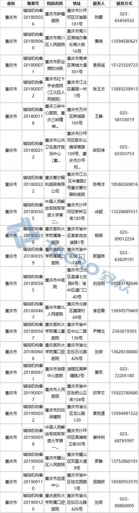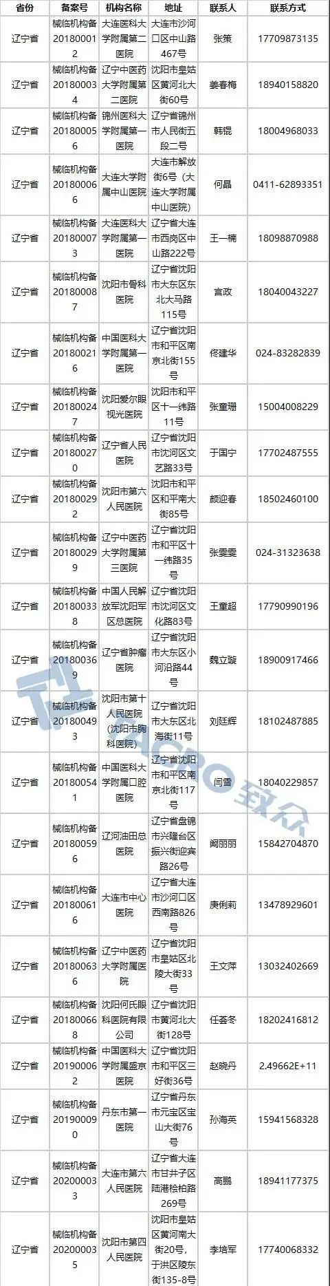 全国900家医械临床试验机构备案信息合集!(含联系方式)
