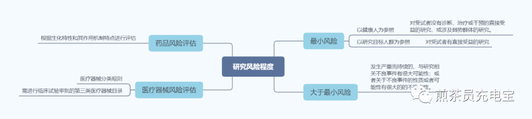 关于受试者隐私保护,可参照《药物临床试验 受试者隐私保护·广东共识(2020 年版)》 另外,为了获得研究结果而采取的一些研究设计和检查步骤,同样可能会给受试者带来风险。比如受试者分到空白组或安慰剂组而无法获得更有效的治疗;为了研究而进行的放射性或介入性检查等。 1.3 根据风险程度可分为最小风险和大于最小风险两种。