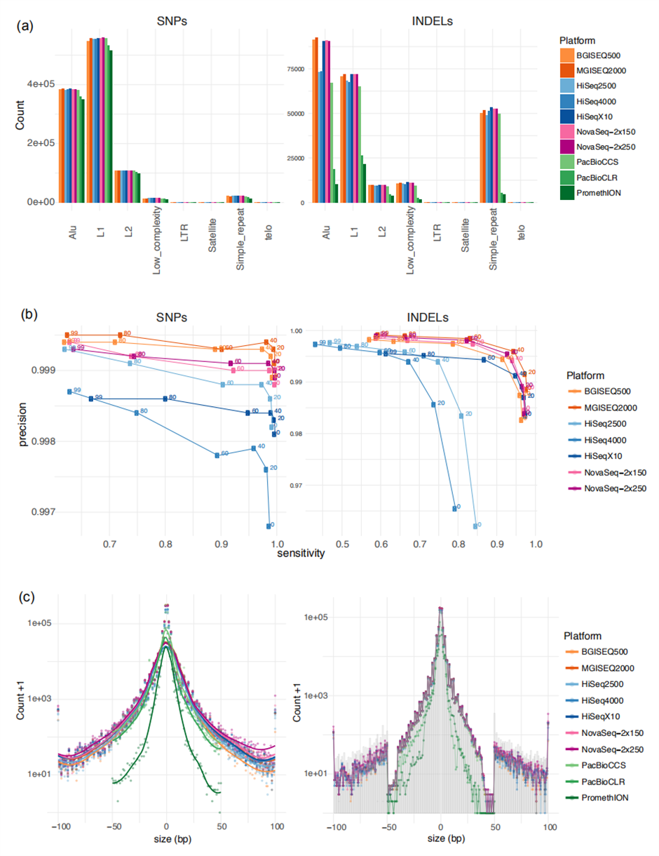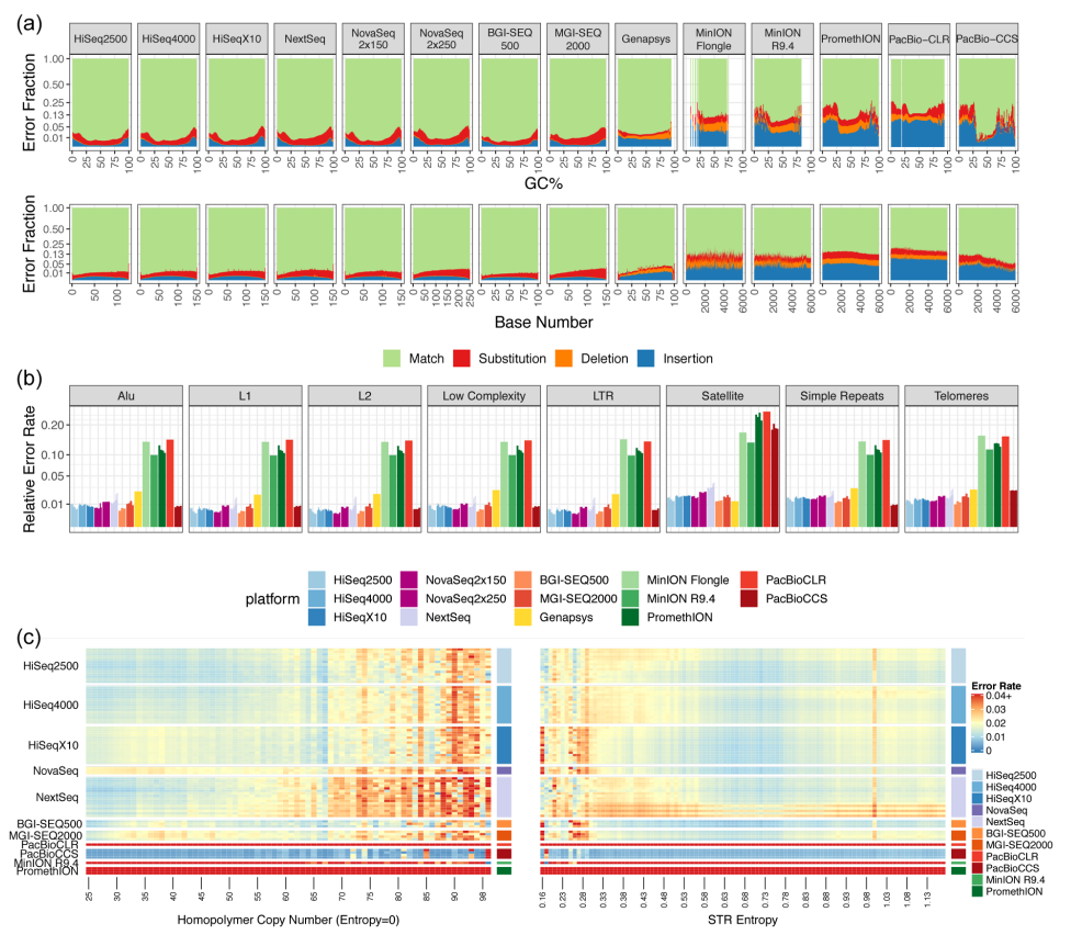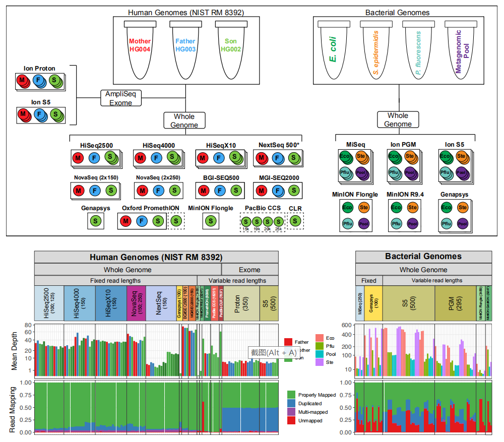 目前,能够完成DNA大规模平行测序的平台,除了基于边合成边测序原理的Illumina平台和基于半导体测序法的Thermo Fisher平台外,作为新兴测序平台代表的华大智造DNBSEQ平台异军突起,长读长平台Oxford Nanopore也呈飞跃式发展。 各家测序仪的“霸主之争”由来已久,在人类和细菌基因组DNA层面的测序性能到底如何,不同的检测需求又该如何进行平台选择?到底应该如何看待各个平台的错误模式? 近日,由生物分子资源设施协会(Association of Biomolecular Resource Facilities ,ARBF)支持的ABRF NGS II期研究成果发布于预印本平台BioRxiv。此研究分析了在文库制备和生物信息可控下, 各大测序平台的数据,将平台的性能和测序错误模式一一揭示,为各大平台的“霸主之争”提供真实全面的参考依据。 1 ABRF NGS II 期研究,规模宏大 ABRF于1989年正式组建,成员包括来自41个国家/地区、340个不同核心实验室的1000多位科学家,成员来自工业界、政府、学术界以及研究机构。ABRF致力于通过研究、交流和教育推进生物技术实验室的核心竞争力和研究。 在ABRF NGS II期研究中,研究者在多个实验室内,基于16款测序平台,对一个人类基因组家族、三个单独的菌株和十种细菌的宏基因组混合物测序,并将各平台数据进行多角度比较。 这些平台包括6款Illumina平台、3款ThermoFisher Ion Torrent平台, 2款DNBSEQ平台(BGISEQ-500和MGISEQ-2000)以及Oxford Nanopore平台和Genapsys平台等。数据分析包括各平台的reads mapping能力,不同平台的测序覆盖度、复杂区域的测序错误率、不同突变类型的检出影响因素等。 2 以25X均一化测序深度后,长读长和短读长平台的基因组覆盖度均较好。 按照UCSC的 RepeatMask分类,DNA重复序列分为Alu、L1、L2、LTR、微卫星、简单重复和端粒区域。测序数据显示,对于DNA重复序列的检测,平台各有所长:BGISEQ-500、HiSeq4000 、NovaSeq 2x150bp在捕获Alu区域时具有优势,HiSeq 2500、HiSeq X10和NovaSeq 2x150bp在捕获L1、L2和低复杂度区域表现最佳,PacBio CCS和NovaSeq在微卫星区域和简单重复区域的测序中表现最好, PromethION平台的特长则在端粒区域的捕获。 分析结果显示,测序错误率与基因组GC含量具有直接相关性。在GC含量比较高的区域(75%-100%),各平台的错误率均比较高。就错误模式而言,华大智造的DNBSEQ平台和Illumina平台更倾向于核苷酸替代,而且这两个平台比较,灵敏度相当,但华大智造的精度略好;Genapsys平台和长读长平台最主要错误来源是插入/缺失。 SNV(单核苷酸变异)和INDEL(插入/缺失突变)是生物DNA常见的突变类型。 在SNV的检出中, 华大智造的DNBSEQ平台最为灵敏,其次是NovaSeq 2x250bp、NovaSeq 2x150bp、HiSeq 2500、HiSeq X10和HiSeq4000平台。对INDEL的检出中,所有平台灵敏度均达到99.5%,华大智造的DNBSEQ平台和NovaSeq的检出相似,优于其他平台。PacBio、Nanopore平台对于SNV和INDEL的捕获能力均较弱。 数据表明, SV(结构变异)的检出与多因素相关,如SV类型、测序平台、实验室间的操作等。 在各平台数据中,HiSeqX10检测到SVs数量最多,其次是HiSeq4000和HiSeq2500。检出假阳性最多的平台依次是HiSeq2500, HiSeqX10和HiSeq4000。 此研究对于GC不平衡的原核细菌基因组进行了测序分析,包括三种单一菌种和十种细菌的混合物,各样本分别于MiSeq、Ion PGM和 Ion S5平台测序。 细菌基因组捕获的影响因素主要为菌种差异和测序平台差异。在各个平台中,ThermoFisher的Ion PM和 S5平台在错误率角度略胜一筹。对于复杂的宏基因组样本,所有平台都能够识别混合物中的所有菌株,但对基因突变的捕获水平差异较大。 3 ABRF NGS II期研究是迄今为止最全面的DNA测序分析研究之一,此研究跨越不同基因组大小和核苷酸组成,多角度分析揭示了测序平台之间的特征差异,以及同一平台的可变性和可重复性。 综合各项数据,样本的GC含量是影响测序错误率的主要因素。对单一样本的DNA测序而言,成熟的平台如Illumina的表现依旧名列前茅,新兴平台的多项性能已经和成熟平台不相上下。但就特定区域如Alu的捕获能力,对SNV、INDEL的检出和错误模式的评估,来自华大智造的DNBSEQ平台,受益于其独特的测序文库方法学,已经独具优势。 不可忽略的是,“对于宏基因组样本,各平台对样本变异的捕获能力差异较大,这表明在复杂背景下对于特定突变的捕获,仍存在挑战”, 论文作者、威尔康奈尔医学院Jonathan Foox教授如是说。 多年来,DNA大规模平行测序的市场一直由Illumina和ThermoFisher等寡头垄断。通过此研究,我们欣喜的发现,越来越多的新兴测序平台依托精益求精的性能指标,在“霸主之争”中不可小觑。 参考资料: Jonathan Foox .et al,Multi-Platform Assessment of DNA Sequencing Performance using Human and Bacterial Reference Genomes in the ABRF Next-Generation Sequencing Study , bioRxiv ,2020,doi:https://doi.org/10.1101/2020.07.23.218602 · END · |