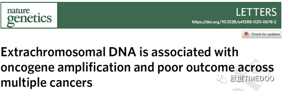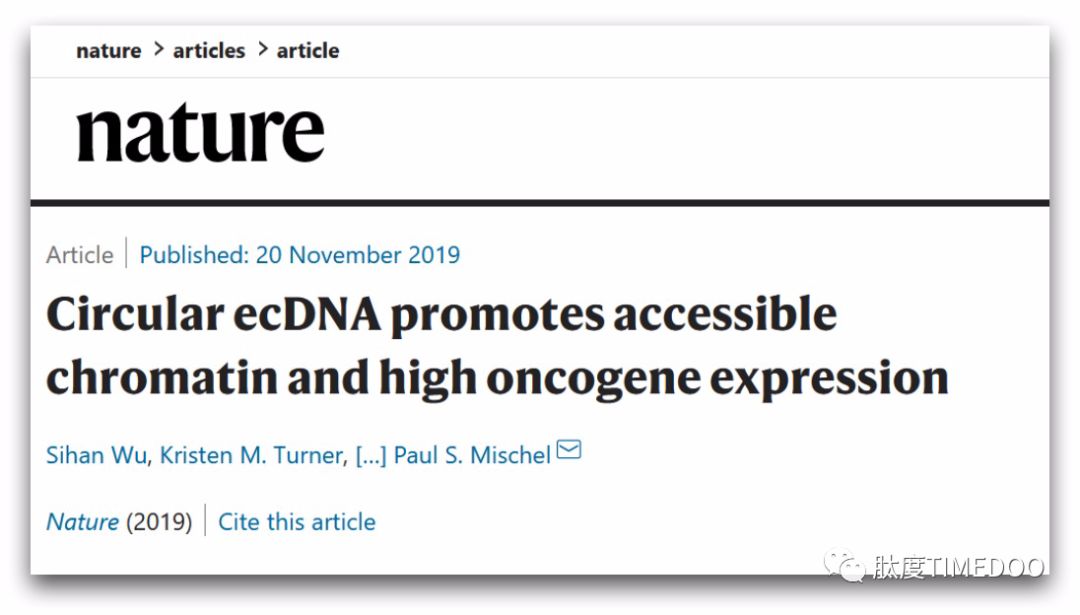 今日,Nature Genetics《自然·遗传学》杂志刊登了有关肿瘤染色体外环状DNA(extrachromosomal DNA,ecDNA)研究的重大进展。论文首次在大量的肿瘤临床样本中证明了ecDNA的存在,并进一步证实了其作为一种癌基因的载体,具有活跃转录能力,以及高度开放的染色质,并且与肿瘤患者的死亡风险相关。论文作者由来自Jackson Laboratory的TCGA科学家Roel Verhaak教授团队,来自加州大学圣迭戈分校(UCSD)人类基因组计划科学家Vineet Bafna教授团队,以及来自UCSD医学院肿瘤遗传与ecDNA领域的领军实验室Paul Mischel教授团队组成。在2019年年底,该团队已在Nature《自然》杂志上刊登了有关肿瘤ecDNA结构与功能的研究。在今日上线的论文中,该团队通过生物信息学方法,对The Cancer Genome Atlas(TCGA,肿瘤基因组图谱计划)及Pan-Cancer Analysisof Whole Genomes(PCAWG,泛肿瘤全基因组分析计划)数据库中、共计5022例临床肿瘤及正常组织对照的全基因组测序数据,进行了重分析,完整描述了ecDNA的序列结构以及临床意义。(图片引自吴思涵博士2019年的Nature论文)研究发现,肿瘤中扩增的癌基因,可以从染色体上脱落下来,形成环状的DNA,即ecDNA。由于其特殊的物理结构以及细胞遗传形式,ecDNA能快速地推动肿瘤的进展,并导至肿瘤耐药。去年11月,肽度TIMEDOO邀请了ecDNA领域的专家吴思涵博士,以第一作者身份解读了刊登在Nature《自然》杂志上里程碑式的研究论文:今天,我们很荣幸再度邀请该项目的参与者吴思涵博士,第一时间为大家带来独家解读。肽度TIMEDOO:时隔一年,肿瘤环状ecDNA领域又有重大进展。相比上一次您发表在Nature上的论文,本次研究有什么新的进展?吴思涵博士:上一次的研究,我们的重心是对肿瘤ecDNA的结构与功能进行细致解读,通过超高分辨率显微成像结合多种测序技术,首次阐明了ecDNA的环状结构,并揭示了其基本分子生物学功能,同时也为后续的研究奠定了许多理论以及技术的基础。那个时候,我们的研究模型是体外培养的肿瘤细胞系。 |