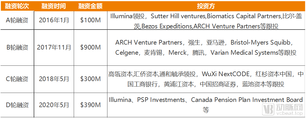 在2016年刚成立时,GRAIL就同时完成了Illumina领投的1亿美元A轮融资。随后GRAIL又在接下来的几年中接连完成了自己的B、C、D轮融资,四轮融资的总融资额达到16.9亿美元,换算成人民币超过100亿,堪称一级市场的“资本收割机”。