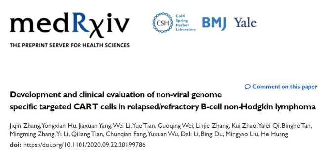 2020年9月28日 ,专门从事基因疗法和细胞药物研发的BIORAY LABORATORIES Inc.(以下简称“ Bioraylab”)首次宣布,非该公司与华东师范大学和浙江大学医学院附属第一医院合作开展的针对病毒PD1的靶向CAR T治疗复发/难治性B细胞非霍奇金淋巴瘤的研究取得了重大突破。这是基因编辑技术在世界上首次实现PD1基因敲除CAR T治疗的应用,也是世界上第一个用非病毒PD1特异性靶向CAR T细胞治疗淋巴瘤的临床试验。 由华东师范大学,浙江大学医学院附属第一医院,浙江大学医学院和Bioraylab完成的最新研究结果于2020年9月23日在medRxiv预印平台上公布。 PD1特异性靶向CD19-CART 是Bioraylab的Quikin CART平台技术,使用其专有IP,无需使用病毒即可将CAR盒精确插入PD1基因座,从而只需一步即可生成CAR T产品。该产品将PD1免疫检查点抑制与CART抗肿瘤活性结合在一起,产生抗PD1免疫疗法和CAR T疗法的效果。正在进行的多项临床试验证明了CAR T产品的出色安全性和有效性。 经过三个月的治疗,两名患者完全缓解 该临床试验计划招募了15名患者,其中,能够接受评估的4名患者在接受1个月的治疗后显示部分缓解(PR),而2名患者在3个月的治疗后显示完全缓解(CR)。 在整个治疗过程中,没有与CAR T细胞相关的严重(≥3)不良事件,包括细胞因子释放综合征(CRS)和神经毒性。输注后,CAR T细胞在体内维持良好。 Quikin CART技术无需使用病毒即可产生CAR T细胞,从而大大降低了生产CAR T产品的高成本,同时避免了随机插入产生的癌症风险。T细胞内源性基因的调节和CAR的恒定表达仅需一步即可实现。与其他CAR T技术相比,Quikin CART具有多种优势,包括工艺更简单,生产环节更少,准备时间更短以及产品均一性更高。 Bioraylab首席科学家兼华东师范大学教授刘明耀说: “ Quikin CART技术无需使用病毒,只需一步即可实现CAR盒与基因组的精确整合以及T细胞内源基因的调控,与现有的CAR T技术相比,具有许多无与伦比的优势。该技术为将来开发更多的CAR T产品提供了强大的平台。” 该临床试验的项目研究者,浙江大学医学院附属第一医院主任黄鹤评论说: “目前的结果表明,使用Quikin CART技术生产的非病毒PD1基因敲除CAR T细胞具有巨大的治疗潜力。我们非常高兴看到患者在治疗后迅速显示CR,并期待通过这种新颖的CAR T技术对复发/难治性患者提供更安全,更持久的长期疗效。” 除了正在进行的针对非病毒PD1的靶向CD19-CART的临床试验之外,Bioraylab还在开展其他用于治疗实体瘤的非病毒的靶向CART产品的研究,目的是在CAR T疗法方面取得更多突破。 关于Bioraylab Bioray Laboratories Inc.(“ Bioraylab”)于2013年在上海成立,通过基因编辑的创新和对全人类有益的突破性疗法的开发,已经做好了成为世界领先的基因细胞药物制造商的准备。Bioraylab拥有108项专利,并在世界八家领先的医院中的五个项目中进行了IIT试验,其中三个已进入IND申请阶段。在过去的五年中,Bioraylab已在国际知名期刊(包括《自然生物技术》和《自然医学》)上发表了12篇高级学术论文。该公司已经建立了三个用于基因编辑,细胞治疗和基因治疗的技术平台,并拥有一个6,000平方米的GMP中试工厂和一个由近100人组成的运营团队,这使该公司能够保证快速发展。创新研究成果的转化和应用。 |