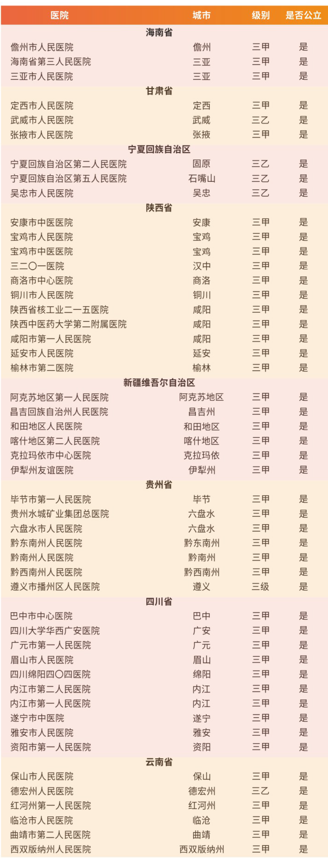 地级城市医院位于地级城市(包括地级市(不含省会城市和计划单列市)、自治州、自治盟、地区)的综合医院、中医医院、各级医学院附属综合医院和区级医院,不含专科医院和部队医院。
