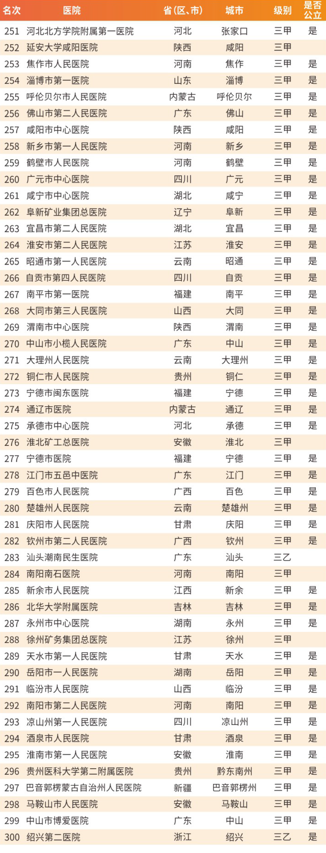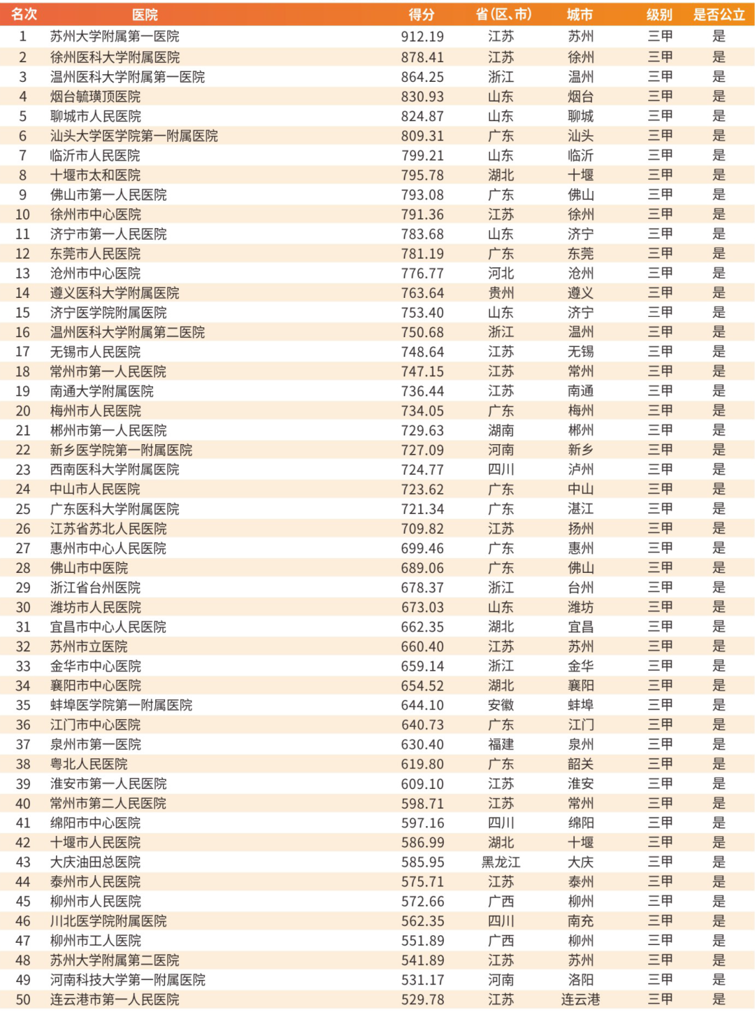 最新,中国地级城市医院500强名单公布!