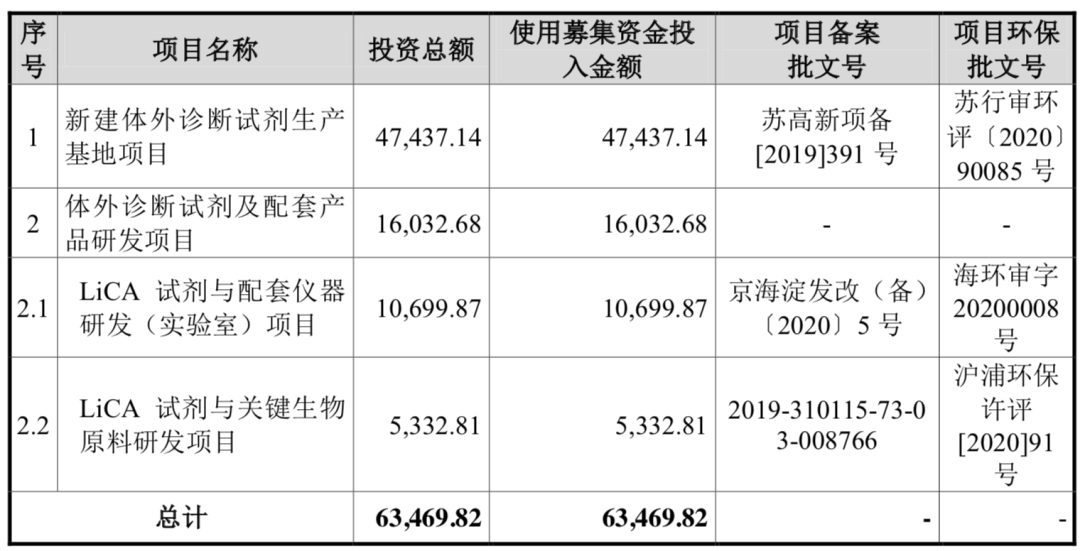 据招股书披露信息,科美诊断本次公开发行股票预计募集资金6.3亿人民币,主要用于以下方面:新建体外诊断试剂生产基地项目、体外诊断试剂及配套产品研发项目、LiCA试剂与配套仪器研发(实验室)项目、LiCA试剂与关键生物原料研发项目。 科美诊断是一家主要从事临床免疫化学发光诊断检测试剂和仪器的研发、生产和销售的高新技术企业,公司产品为基于光激化学发光法的LiCA系列诊断试剂和基于酶促化学发光法的CC系列诊断试剂及仪器,主要应用于传染病(如乙肝、丙肝、艾滋病、梅毒、甲肝、戊肝等)标志物、肿瘤标志物、甲状腺激素、生殖内分泌激素、心肌标志物及炎症等的检测。据招股书披露信息,2017年-2019年间,科美诊断分别营收3.1860亿、3.6605亿、4.5467亿元,扣非归属母公司净利润分别为8446.14万元、8731.25万元、12591.82万元,实现较高幅度增长。其中,LiCA系列产品和CC系列产品为科美诊断主要收入来源,占公司销售收入的比重合计超过99%。传染病领域为我国化学发光临床应用的最大细分市场,占比约为40%,科美诊断销售收入主要集中于传染病领域,2019年公司传染病系列产品收入已近4亿元,是该领域进口替代的主要企业。 |