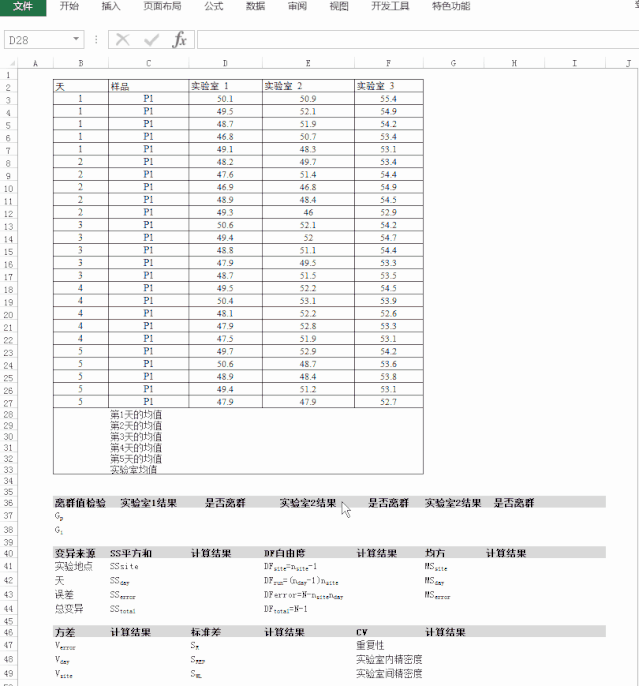 1. IVD研发质量的重要性IVD(全称invitro diagnostic products),是指医疗器械、体外诊断试剂,以及药品,IVD作为医疗器械的分支,有特有的界定和法规监管。 IVD监管的最高级法律是《医疗器械监督管理条例》,条例就医疗器械产品注册与备案、医疗器械生产、医疗器械经营与使用、不良事件的处理与医疗器械的召回、监督检查等方面作了规定,条例及相关法规的核心是为了保证医疗器械的安全、有效,保障人体健康和生命安全。 IVD产品安全、有效性不足导至的后果,不像药品,或是植入性医疗器械不良事情引起的后果直观,药品和植入性医疗器械与人体直接接触,很直接地影响到人的生产健康,即俗话说的人命关天。 而IVD产品作为体外检测产品,检验指标仅作为参考,需要结合其它指标综合判断,检验指标的重要性和指标错误的危险性就不那么直观。但从以下两个例子可以看出,没有相应的检验指标,或是检验指标结果错误,导至的后果也可严重影响人命安全。 2016年X医院急诊科,患者34岁因腹痛、纳差至急诊,给予5%GNS,后诊断糖尿病酮症酸中毒,经抢救无效死亡。(应排除高血糖情况下用GNS补液) 2012年X医科大学附属医院血液科,患者因再障合并甲状腺功能亢进入院。6天肺部感染后昏迷,查静脉血糖为25mmol/L。高渗性昏迷、经抢救无效死亡。(指末血糖是5.5mmol/L) 医疗器械的安全、有效归结为产品质量,产品质量的首要把关人和责任人在研发,研发决定了IVD产品的安全性和有效性即是质量,其它部门影响或改进了IVD产品质量。统计结果显示,产品70%的质量问题是由设计不当引起的,所以我们应该在设计环节入手,优先解决设计的质量问题,这样成本最小,效果最好。 而在IVD研发中,设计合格的第一指标就是IVD产品的分析性能合格,下面详细介绍分析性能评估和验证的依据,分析性能评估中的精密度评估方法。 2. IVD产品分析性能评估和验证的依据。IVD产品分析性能评估和验证的依据主要有四类来源。 一是权威版本,美国临床和实验室标准协会(CLSI)发布的EP系列标准。 二是专业版本,中华人民共和国国家卫生和计划生育委员会发布的WS/T标准。 三是应用版本,中国合格评定委员会(CNAS)发布的标准。 四是监管版本,全国医用临床检验实验室和体外诊断系统标准化技术委员会(SAC/TC136)发布的YY/T标准。 除了上述四种分析性能评估验证方法标准来源外,作为医疗器械监督管理机构之一的“国家药品监督管理局医疗器械技术审评中心”也在2019年9月发布了《定量检测试剂性能评估注册技术审查指导原则(征求意见稿)》,医疗器械相关产品的注册资料需要满足指导原则要求。 作为IVD产品研发人员,上述几类来源的同类标准,均应该去学习和了解,可以根据标准发布的前后顺序安排,不同来源标准内容完整性和详实程度不一致,会有不同的立场和侧重点,可以加深标准的理解,有助于建立适用企业内部的分析性能评估方法,更能满足监管机构的要求,减少产品注册过程中的发补,另外由于此类的标准由检验医学界专家编制,有助于把握和了解用户需求,从而完善产品研发阶段的设计。 下文以《体外诊断检验系统 性能评价方法 第1部分:精密度》为依据,总结精密度评估的重点内容,使用excel计算实验室内精密度、实验室间精密度、95%置信区间的方法。 3.定量试剂分析性能评价方法(精密度)医学实验室对患者样品进行检验,一般情况下对每份样品只做一次检验就发出报告,因此要求检验结果必须具有良好或足够的精密度。这也是行业内将精密度列为产品分析性能第一位的原因。 3.1精密度相关定义① 性能评价:对预期成为体外诊断医疗器械的产品,为建立或验证其性能声明而进行的研究。(与性能评价相区别的是临床评价,临床评价属于确认,性能评价属于验证)② 测量精密度:在规定条件下,对同一或相似被测对象重复测量得到测量示值或测得量值间的一致程度。 (测量精密度通常用我们熟悉的变异系数CV和标准差S来表述) ③ 测量重复性:在一组测量条件下的测量精密度,包括相同测量程序、相同操作者、相同测量系统、相同操作条件和相同地点,并且在短时间段内对同一或相似被测对象重复测量。 (在检验实验室里所常用的批内精密度、序列内精密度就是指测量重复性) ④ 中间精密度:在一组测量条件下的测量精密度,这些条件包括相同的测量程序、相同地点并且对相同或相似的被测对象在一长时间段内重复测量,但可包含其它相关条件改变。 (与重复性的差别在于测量结果是在一长时间段内收集的) ⑤ 测量再现性:在包括了不同地点、不同操作者、不同测量系统的测量条件下对同一或相似被测量对象在长时间重复测量的测量精密度。 (在检验实验室里所常用的实验室间精密度就是指测量再现性) 根据上述定义,精密度不能简单粗暴地理解为测多个重复的CV,这会导至我们分析性能评估不完整,对产品的实际性能认识不清晰,如只考虑重复性类精密度,则发现不了产品对环境、仪器、时间、操作者的敏感性。 3.2精密度评估总则① 总体要求:性能评价的计划、实施、评价和文件化等相关过程要符合YY/T 1441的规定。制造商应规定所有管理和实施IVD性能评估相关人员的责任和相互关系,并确保具备充足的资源。制造商设计评价方案,并进行测试,做好相关记录,所有文件和记录作为该产品技术文件的一部分