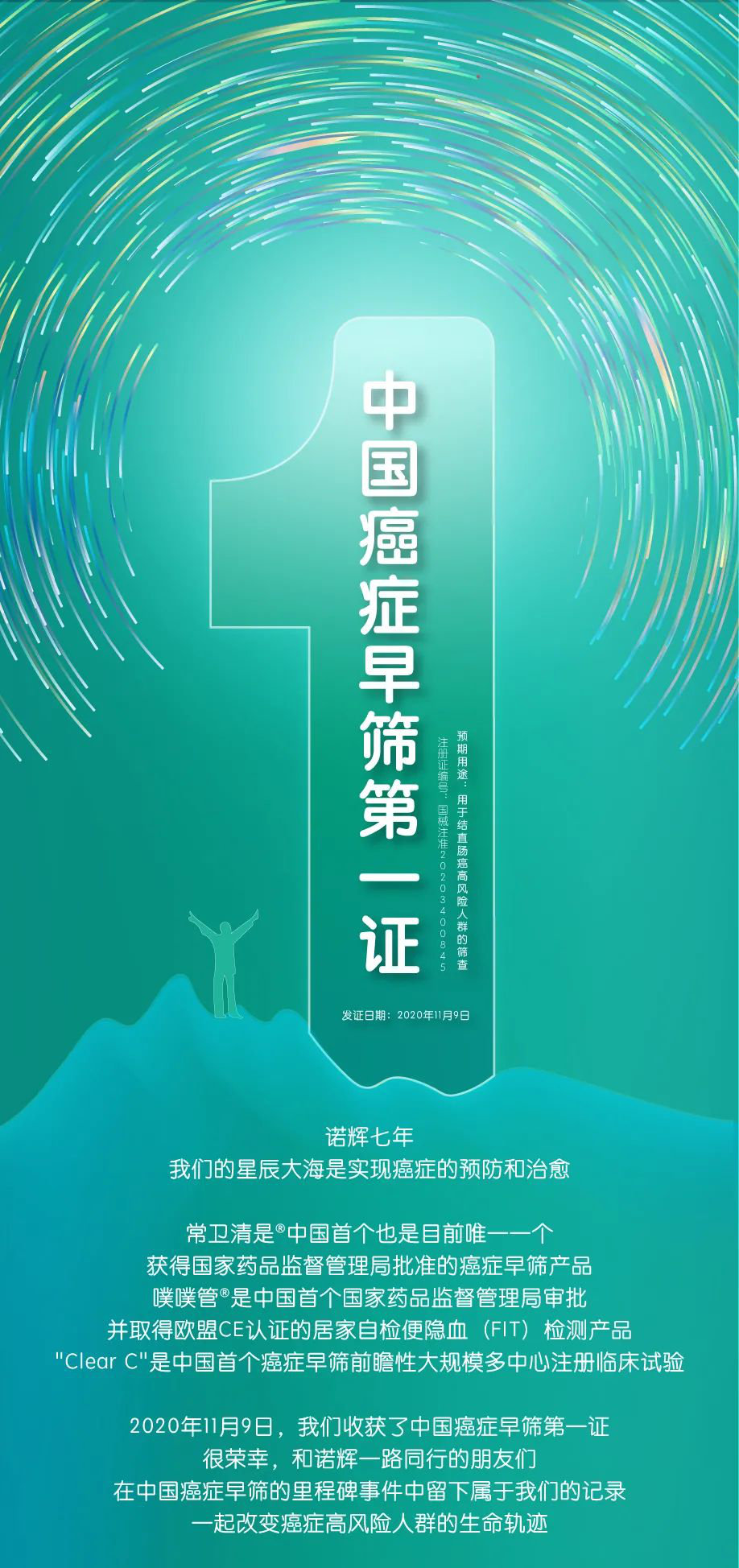 诺辉健康肠癌FIT-DNA联检试剂盒常卫清™ 获NMPA批准上市,成为首个获批 癌症筛查预期用途的IVD产品 2020年11月9日,杭州诺辉健康科技有限公司的“KRAS基因突变及BMP3/NDRG4基因甲基化和便隐血联合检测试剂盒(PCR荧光探针法-胶体金法)”(商品名:常卫清™)获得NMPA批准上市,成为首个也是目前唯一一个获得国家药品监督管理局批准的癌症早筛产品。该产品的注册临床试验“Clear-C”则是中国首个癌症早筛前瞻性大规模多中心注册临床试验。 同泽合信作为本项目的CRO,提供了从创新申报到临床试验在内的全程服务,成功助力诺辉健康取得具有里程碑意义的癌症筛查第一证。 常卫清™预期用途: 本试剂盒用于体外定性检测人粪便样本中的 KRAS 基因突变、 BMP3 和 NDRG4 基因甲基化及血红蛋白,各个指标的检测值通过配套分析软件计算综合评分,用于对肠镜依从性差的结直肠癌高风险人群的筛查。 综合评分大于或等于阳性判断值的样本为阳性,表示受检者体内可能有结直肠癌和/或进展期腺瘤,需要进一步接受肠镜检查;反之,如果综合评分低于阳性判断值,表示受检者体内有结直肠癌和/或进展期腺瘤的可能性低,但并不能完全排除疾病风险。 鉴于受试者为高风险人群,因此在必要时仍应建议进行肠镜检查。 常卫清™申报历程简单回顾: ● 2018年4月,进入国家局创新医疗器械特别审批通道; “Clear-C”(Colorectal Cancer Early Screening in China)注册临床试验,由浙江大学医学院附属第二医院作为牵头研究单位,联合江苏省人民医院、复旦大学附属肿瘤医院、四川大学华西医院、天津医科大学总医院、山西省人民医院、湖北省肿瘤医院、郑州大学第一附属医院共8家具备足够区域代表性的大型三甲医院共同开展,历时16个月,累计入组数据近6000例,实际纳入统计分析数据4758例。 “Clear-C”临床研究的项目负责人、浙江大学医学院附属第二医院丁克峰院长介绍,此次试验有三个特点:一是我国此前从未有过有关肠癌早筛的前瞻性注册临床试验,二是入组样本量大,三是试验结果优异。 临床试验结果显示,常卫清™针对结直肠癌患者筛查的灵敏度为91.94%,对进展期腺瘤患者筛查灵敏度 63.47%,针对结直肠癌和进展期腺瘤筛查特异度为 87.08%;结直肠癌筛查阴性预测值99.6%。 针对结直肠癌患者检测灵敏度 95.54%,检测特异度87.11%。 ● 2020年11月,获得NMPA批准。 |
