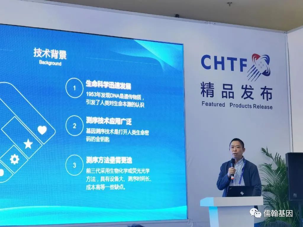 2020年11月11日,中国国际高新技术成果交易会在深圳会展中心开幕,12日儒翰基因研制的的固态纳米孔基因测序仪在高交会首次发布,并将在11日-15日的系列展览中展出。这是我国自主研发的第四代基因测序设备,填补了国内基因测序最新技术领域的空白。 基因测序核心技术壁垒高,一直被欧美发达国家的少数公司所垄断,在一定程度上威胁到国家的生物安全。尽管国内厂家通过努力在第二、三代测序技术产品上有所突破,对第四代测序技术也发起了冲击;但要掌握核心技术,形成拥有自主知识产权,生产有竞争力的产品,实现自主可控、安全可靠还需要业界长期不懈的努力。以卢大儒教授等为代表的国内著名基因领域科学家团队向第四代基因测序技术难题发起了挑战。作为国家出生缺陷与生殖健康重点实验室主任,他表示:“我们将勇于担当第三次生命科学革命的先锋开拓者,在生命科学史上刻上中国科学家的名字。” 儒翰基因董事长、复旦大学博士生导师卢大儒教授致辞 发布会上,福田区企业发展服务中心主任冯向阳出席并致辞