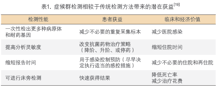 一、传统的病原体检测方法及存在的问题 传统的病原体检测方法包括:形态学、培养、免疫学和分子生物学检测。形态学检测简单快速、成本低廉,仅适用于检测细菌、真菌检测,难以检测病毒。培养方法可获得病原体,可进一步做种属鉴定和药敏试验,是感染病诊断的“金标准”,但费时、费力,且能检测的病原体种类较少。免疫学检测是根据抗原抗体特异性结合原理间接诊断病原体感染。传统分子生物学检测技术以PCR为代表,是通过合成特异性引物检测病原体靶基因。由此可见,形态学和培养方法一次试验可检测多种病原体,但敏感性较差,能检测的病原体种类较少;免疫学和PCR方法虽有较高的敏感性和特异性,能检测的病原体种类较广,但为靶向检测,即一次试验仅能检测一种病原体,诊断效率较低。由于感染性疾病缺乏典型的症状和体征,相同的症状可能由不同的病原体引起,也可能由几种病原体混合感染引起,逐一进行病原体检测工作量大、费时长,可能延误诊断。 二、症候群检测方法及优势 近些年,随着分子诊断技术,特别是多重PCR技术(能在一个样品中检测几种目标)和一体化检测(微流控)技术的使用,症候群检测(Syndromic Approachtesting)得到了快速发展。这种诊断方式不同与以往对可能的病原体单一靶向检测的模式,而是从患者的症状和表征出发,涵盖症候群感染相关的常见病原体组合,一份样品、一次检测就可以诊断或排除多种病原体,显著提高了诊断效率。 世界卫生组织(WHO,World Health Organization)最早于1991年提出了关于症候群检测的概念“Syndromic case management”。WHO在2004年总结了症候群病例管理的关键特征如下:(1)问题导向性(它体现了患者的症候群);(2)具有高度灵敏性,一次性涵盖更多的病原体,不会漏掉多种病原体混合感染;(3)在患者第一次就诊时就进行精准治疗;(4)让疾病(STI)的诊疗具有更高的可及性,可以在初级的医疗机构中进行;(5)使用流程图通过有逻辑的步骤指导卫生工作者。症候群检测的主要优势总结如下: 1. 针对症候群进行检测项目的设计,同时涵盖多种靶标:同一症候群通常可能由多种病原体引起,例如呼吸道感染可能由细菌,病毒,非典型病原体引起;血流感染可能由细菌,真菌引起,同时更需要考虑多重耐药菌(耐药基因)的检测;这就要求症候群检测不能是简单的某几种病毒进行组合或者细菌组合,而是要考虑到症候群常见的感染病原体,同时涵盖细菌、病毒和耐药基因等;这样才能够一次性为临床提供症候群相关病原体更全面的诊断和治疗信息。 2. 生物安全性好,技术具有更高可及性:传染性疾病患者的样本中病原体具有不确定性,操作过程中存在较大的生物安全风险。随着微流控技术的成熟应用,一体化的设计可以在同一个测试条中完成从原始“样本进”到最终“结果出”的全过程。操作过程极大的简化,不再需要繁琐的人工操作来完成试剂制备,加样,PCR扩增等步骤。一方面提高了生物安全性,减少了检测过程中样本污染和人员感染的风险;另一方面提高了技术的可及性,降低了对操作人员和环境的要求,不再要求严格的实验室三区分区和技术熟练的操作人员,拓展了技术的使用空间,可以在更基层的医疗机构中应用;也可以不受时间限制,用于急诊检验。 3. 检测速度快,可以使患者在第一时间得到治疗:一体化的检测通常会将反应所需的试剂和实验所需的质控同时包含在一个容器中,对整体的操作流程进行标准化,避免了不必要的重复,通过优化反应体系,整体检测时间大大缩短,例如,生物梅里埃公司的FilmArray RP2 Panel仅需要45分钟即可完成从样本到多种病原体检测结果报告的全过程;赛沛公司的GeneXpert可以在45分钟左右提供甲流、乙流以及呼吸道合胞病毒的检测结果。此外,操作的简化使得相应检测标本可随到随做,无需按照传统的批次流程操作,而是根据患者的症候群进行全面的病原学诊断,从而使得患者能够在第一时间得到治疗。 三、常见感染性疾病症候群及病原体 1. 呼吸道感染症候群:呼吸道感染是指病原体感染人体的鼻腔、咽喉、气管、支气管和肺组织等呼吸系统并引起相应症状。主要表现为发热、咳嗽、咳痰、呼吸困难等。呼吸道感染通常由病毒、细菌、非典型病原体等引起,除了甲型流感和乙型流感之外,其他多种病原体也能造成呼吸道感染,比如鼻病毒、肠病毒、冠状病毒、腺病毒、副流感病毒、偏肺病毒、呼吸道合胞病毒、肺孢子菌、金黄色葡萄球菌等。《新型冠状病毒肺炎诊疗方案试行第八版》中提到,“新型冠状病毒肺炎主要与流感病毒、腺病毒、呼吸道合胞病毒等其他已知病毒性肺炎及肺炎支原体感染鉴别。”尤其对疑似病例要尽可能“采取包括快速抗原检测和多重PCR核酸检测等方法,对常见呼吸道病原体进行检测。”治疗时必须明确引起感染的病原体以选择对应的治疗方案。呼吸道感染是临床的常见病,不同感染场所(如社区感染、医院感染)、不同季节性,不同年龄、不同基础疾病(如器官移植、糖尿病、艾滋病)患者感染的病原体各不相同,如社区获得性呼吸系统感染的主要病原体为病毒、支原体、衣原体、肺炎链球菌、流感嗜血杆菌等,而医院获得性呼吸道感染的主要病原体为细菌,尤其是耐药性细菌,如鲍曼不动杆菌、铜绿假单胞菌、大肠埃希菌、肺炎克雷伯菌、金黄色葡萄球菌等。一项针对儿童患者
