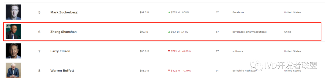 来源:红钻财经、六一知事院、万泰生物官网 整理:IVD开发者联盟 1月5日下午,据福布斯全球富豪榜实时数据,钟睒睒以915亿美元的身家超越甲骨文总裁拉里·埃里森和“股神”巴菲特,跻身全球富豪榜第六位。 目前,居于全球富豪榜榜首的依然是亚马逊创始人杰夫·贝索斯。 钟睒睒实控两家公司 农夫山泉和万泰生物,持股比例均达80%以上 在农夫山泉发展至今的24年间,共打造出了7个爆款产品——农夫山泉、尖叫、茶π、东方树叶、水溶C100、维他命水与TOT气泡水。 而钟睒睒财富的大幅增长,也来源于农夫山泉股价的大涨。1月4日,港股农夫山泉股价大涨超8%,再创上市以来新高,总市值超6600亿港元。 北京万泰生物药业股份有限公司(简称:万泰生物)成立于1991年,是从事生物诊断试剂与疫苗研发及生产的高新技术企业。 公司以“为人类的健康事业做出贡献”为追求,致力于将生物技术成果转化为优质产品服务于社会大众。经过多年不懈的努力,万泰生物已发展成为亚太主要的艾滋诊断试剂生产基地、中国知名的免疫诊断试剂生产基地以及国家生物高新技术产业化示范工程基地。 公司下设七家子公司,产品涵盖酶免、胶体金、化学发光、核酸检测、生化、疫苗以及质控品等多个领域。截止交易日,2021年1月6日中午,万泰生物大张6.39%,市值达1075亿人民币。 与马云同属浙江文联大院 哥俩首富轮着坐 从杭州西北面往西走6分钟370米,来到下城区建德路9号,这里是是浙江文联宿舍。 1984年,浙江文联的党组书记是袁一凡,当时省文联有2名职工,一个姓钟,诸暨人,爷爷名叫钟子逸,曾是北伐时期诸暨中共第一个党支部书记,孙子是钟睒睒;另一个姓马,浙江杭州人,长期从事浙江省地方曲艺曲种工作,父亲是马来法,儿子叫马云。 大院里小时候,马云管钟睒睒叫闪闪哥,他比闪闪哥小10岁。1984年,已经高考失败3次的闪闪哥,已经从杭州电大毕业,备考《浙江日报》,也是高考失败3次的马云弟弟,被杭州师范学院破格录取到外语本科专业。 网友笑谈 以水为原材料的生意都赚钱 1、 农夫山泉(大自然的搬运工) 2、 体外诊断试剂 3、 疫苗 |