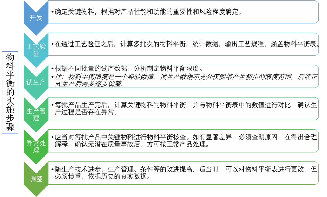 来源:小桔灯网 作者:oryzmeng 《礼记·王制》:量入以为出 引言 在复盘学习历年飞行检查不符合项的时候,偶尔会看到关于物料平衡不到位的情况。然而医疗器械生产质量管理规范并未给出过多关于物料平衡的描述,企业如何制定物料平衡的规程?如何在生产管理过程中执行物料平衡?本文小编带大家一起捋一捋。 关于物料平衡的不符合案例 ◇案例1:查企业2016年12月甲基丙烯酸羟乙酯(HEMA)出库记录及12月投料生产记录,生产记录未体现HEMA工艺消耗及不合格品相干信息,计算物料平衡有差额,且没法说明差额部份用处,没法实现追溯,不符合《规范》中每批产品均应当有生产记录,并满足可追溯的要求。 ◇案例2:《物料平衡管理制度》(文件编号:TX-GL-06-13)未对各种关键物料平衡时的正常可接受范围作出规定。 物料平衡定义和要求 ◇《医疗器械生产质量管理规范附录体外诊断试剂》中关于物料平衡的定义如下: 在适当考虑可允许的正常偏差的情况下,产品或物料的理论产量或理论用量与实际产量或用量之间持平。 ◇要求如下: 2.6.6 应当对每批产品中关键物料进行物料平衡核查。如有显著差异,必须查明原因,在得出合理解释,确认无潜在质量事故后,方可按正常产品处理。 寥寥几句,不能很透彻理解如何执行物料平衡,接下来再看《医疗器械生产质量管理规范检查指南》怎么说。 《检查指南》关于物料平衡的讲述 ◇ 物料平衡的目的 物料平衡指投入量和产出量符合工艺要求,进行物料平衡主要目的是防止因投料错误导至的不可预测的产品质量问题。 由于IVD产品生产的特殊性,工艺主要为按照配方配制,涉及的物料种类较多,很多化学、生物物料的工作液的外观、性状都是白色粉末或者无色无味澄清透明液体,极易混淆,如果仅通过标识控制,可能存在投料错误的风险,因此需要进行物料平衡检查,通过对投料量和产出量的计算来检查是否存在较大差异,以便于查找原因。 ◇ 物料平衡的前提 物料平衡的前提是过程控制,包括标识管理到位、人员操作熟练规范、步骤正确、检查无误、数据记录真实可靠。生产过程中应严格按照工艺文件的配方要求进行投料,应进行物料品名的核对,对称量、复核、记录、加料、损耗、产出量等环节进行记录。 ◇ 物料不平衡的处理 如果发现产出出现明显的差异,应查找分析原因,并进行风险评估,给出合理解释,然后再进行后续处理。 ◇ 物料平衡的计算 物料平衡通常采取计算的方式进行推导。 举例: 在批记录中对物料平衡进行核算有助于发现投料错误等问题。 如按工艺规程要求,1mg物料A和2mg物料B反应后可获得2.5mg半成品C,当结束生产时发现获得的半成品C并不是理论值2.5mg,如果偏差显著时,或超出偏差可接受范围时,应考虑投料是否存在错误的,人员操作是否规范,反应条件是否正确,是否存在超量损耗等。 ◇ 检查要点: 物料平衡主要使用在投料、配制阶段,以及产品放行阶段的复核。 要点一:常规部分,查看物料平衡记录,检查投料和产出是否存在显著差异。 要点二:异常部分,发现差异后是否启动纠偏程序,包括查找原因、评估风险、确定不合格程度、是否需要返工等。 ◇ 检查方法: (1)文件部分:查看文件,对物料平衡是否有明确规定,是否确定物料平衡核查的计算方法和发现偏差的处理办法。 (2)实施部分:查看在生产过程中是否实施物料平衡核查,并记录。抽查部分生产记录,查看是否进行了平衡核查,是否出现明显的差异,有没有采取纠偏措施。 医疗器械质量管理很多方面是借鉴药品管理的经验而来的,所以我们再进一步学习一下药品相关物料平衡的内容。 《药品生产质量管理规范》对物料平衡的要求 仔细分析可以发现,《药品生产质量管理规范》在文件管理、生产管理、质量控制与质量保证三个环节均对物料平衡的要求,这也贯彻了P(文件管理)D(生产管理)CA(质控质保)的精神,详情如下: ◇ 文件管理 第一百七十条 制剂的工艺规程的内容至少应当包括: (二)生产操作要求: 5.预期的最终产量限度,必要时,还应当说明中间产品的产量限度,以及物料平衡的计算方法和限度; (三)包装操作要求: 7.待包装产品、印刷包装材料的物料平衡计算方法和限度。 第一百七十五条 批生产记录的内容应当包括: (八)不同生产工序所得产量及必要时的物料平衡计算; (九)对特殊问题或异常事件的记录,包括对偏离工艺规程的偏差情况的详细说明或调查报告,并经签字批准。 第一百八十条 批包装记录的内容包括: (十)所有印刷包装材料和待包装产品的名称、代码,以及发放、使用、销毁或退库的数量、实际产量以及物料平衡检查。 ◇ 生产管理 第一百八十七条 每批产品应当检查产量和物料平衡,确保物料平衡符合设定的限度。如有差异,必须查明原因,确认无潜在质量风险后,方可按照正常产品处理。 ◇ 质量控制与质量保证 第二百一十五条 在物料平衡检查中,发现待包装产品、印刷包装材料以及成品数量有显著差异时,应当进行调查,未得出结论前,成品不得放行。 第二百五十条 任何偏离生产工艺、物料平衡限度、质量标准、检验方法、操作规程等的情况均应当有记录,并立即报告主管人员及质量管理部门,应当有清楚的说明,重大偏差应当由质量管理部门会同其他部门进行彻底调查,并有调查报告。偏差调查报告应当由质量管理部门的指定人