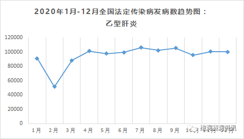 数据来源:中国疾病预防控制中心、疾病预防控制局 传染病〔Infectious Diseases〕是由各种病原体引起的能在人与人、动物与动物或人与动物之间相互传播的一类疾病。中国目前的法定报告传染病分为甲、乙、丙3类,共40种。此外,还包括国家卫生计生委决定列入乙类、丙类传染病管理的其他传染病和按照甲类管理开展应急监测报告的其他传染病。具体分类及名称如下: 根据中国疾病预防控制中心、疾病预防控制局2020年每月公布的全国法定传染病疫情统计表进行汇总整理,现将甲类和丙类法定传染病的发病数趋势图展示如下。 甲类传染病:2种 2020年 甲类传染病总发病数:15例 鼠疫:4例 霍乱:11例 乙类传染病:27种 2020年 乙类传染病总发病数:3220004例 传染性非典型肺炎:0例 艾滋病:63154例 病毒性肝炎*:1413126例 甲型肝炎:15481例 乙型肝炎:1139133例 丙型肝炎