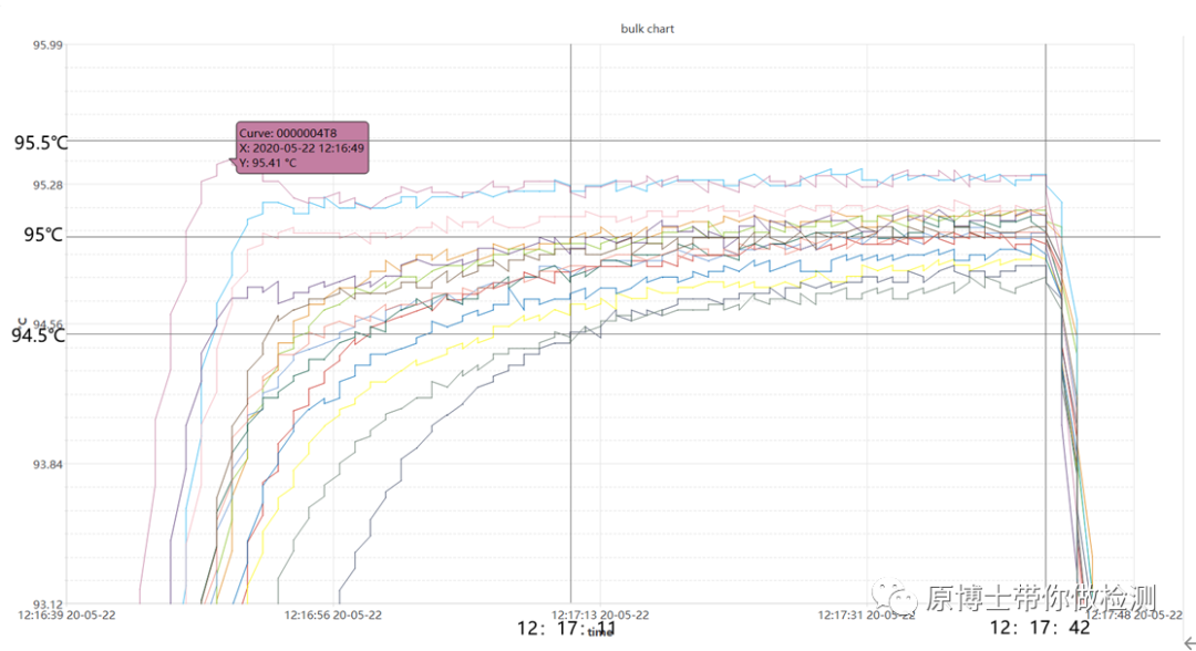 检测人心中最理想的诊断试剂就是又快又准又便宜,但是通常情况下鱼和熊掌不可兼得。作为检测人我也期待着这样的产品早日出现,让我们脱离苦海,但是在这样的产品推出之前,还是希望相关公司在产品研发时能够考虑以下的因素。 一、快速qPCR试剂的评价 快速qPCR的评价应与常规qPCR使用相同的评价标准,重复性(精密度)、分析敏感性(最低检测限)、分析特异性、诊断敏感性和诊断特异性。参见 诊断试剂评价系列2-核酸检测方法(更正)尤其是最低检测限的参数必须明确,否则很容易翻车。 二、快速qPCR的仪器评价 现在有些厂家基于现有的qPCR平台推出了快速qPCR产品。这就要求所使用的qPCR仪器能够满足基本的性能要求,参见 如何系统全面的评价qPCR仪。 三、qPCR的鲁棒性1.鲁棒性/稳健性 Robustness: 指在测试过程中,测试条件发生微小变化时,检测方法不受其影响的能力。 用于衡量检测方法在其参数发生少量但可预料的改变时不受影响的能力;在正常使用中,可显示方法的可靠性。最有可能影响检测qPCR鲁棒性/稳健性的因素包括定量(连续性)因素(温度等)。那么温度是如何影响的试剂性能的呢? 2.荧光定量PCR仪的温度性能试验相关指标 (1)温度示值误差 :在温度技术指标校准程序中, 实时荧光定量 PCR 分析仪均热块设定温度与所有采样测量孔温度平均值之差。 (2)温度均匀度 :在温度技术指标校准程序中, 实时荧光定量 PCR 分析仪均热块所有采样测量孔温度平均值的最大值与最小值之差。 温度示值误差与均匀度* (3)温度最大过冲量 :在温度技术指标校准程序中, 荧光定量 PCR 仪均热块温度升高或降低至设定值过程中,所有采样测量孔温度超出设定值的最大幅度。仪器的温度过冲取决于每种仪器的固有性能,随着仪器的老化,温度过冲量也会发生变化。 温度最大过冲量* 四.qPCR程序下的温度性能评价试验 1.快速qPCR程序: 根据某试剂盒的快速程序使用国产某品牌qPCR仪器:预变性95℃,3min;95℃,5sec,60℃,13sec,45个循环。在本测试中循环数设为15个循环,如下图所示,虽然我们在仪器的程序中设置了相应的温度和时间,但是由于温度的过冲,程序运行过程中的温度和时间与设置的温度和时间存在较大的差异。 快速qPCR程序* 2.快速qPCR 95℃下的温度过冲 95℃ 3min阶段温度最大过冲2.54℃,过冲时间36s,仪器稳定在95℃的时间为2min39s;而在95℃,5sec循环阶段,温度最大过冲3.03℃,过冲时间12s;这意味着在循环阶段的实际运行过程中从未达到过稳定的95℃ 5s。 95℃温度过冲* 95℃温度过冲* 3.快速qPCR 60℃下的温度过冲 60℃,13sec 循环阶段,温度最大过冲2.72℃,过冲时间11s;温度稳定在60℃的时间为8s,这意味着在循环阶段的实际运行条件为60℃ 8s。 60℃温度过冲* 4.荧光定量PCR仪的温度性能指标试验 以15个监测点的温度为例进行分析(布点如下图):运行程序为:30℃,1min;95℃,1min;30℃,1min;90℃,1min;50℃,1min;70℃,1min;60℃,1min;30℃,1min。 95℃温度曲线 95℃温度性能* 60℃温度曲线 60℃温度性能* 不同温度下的温度性能。