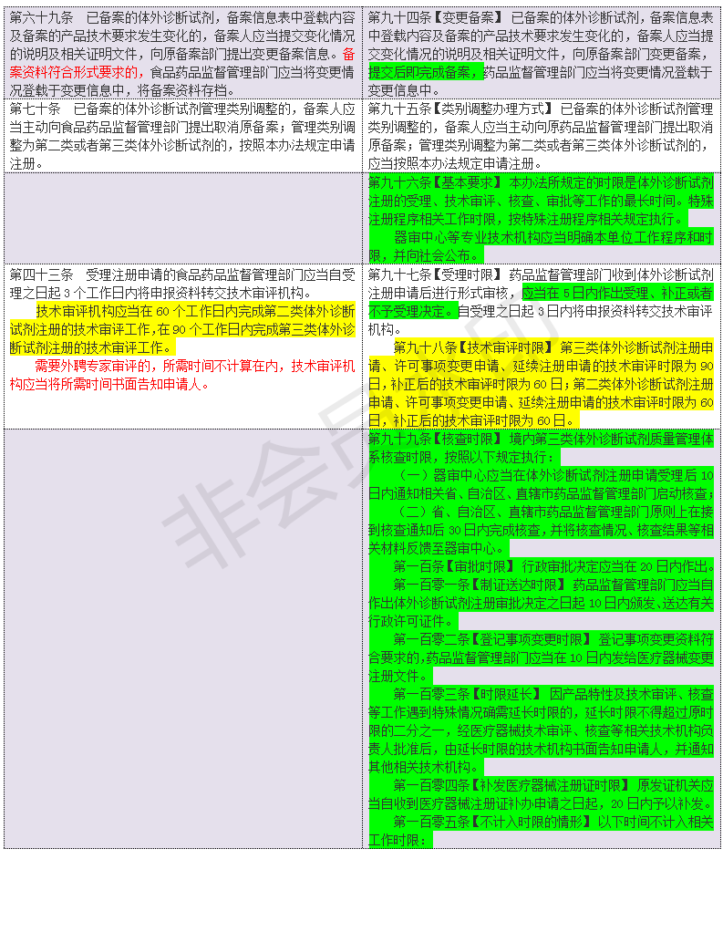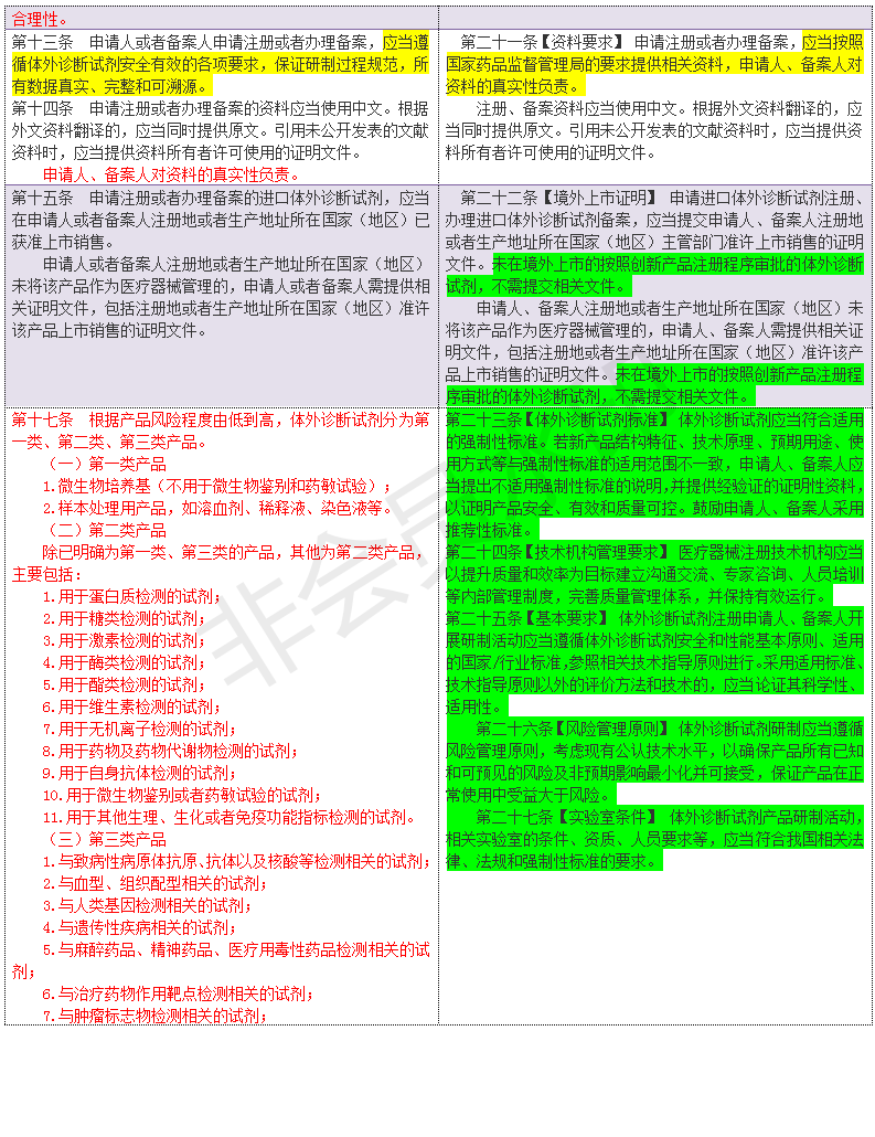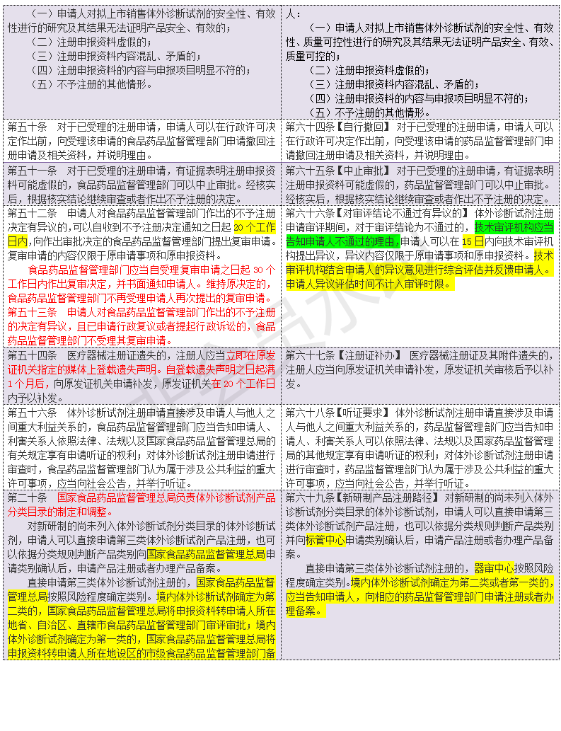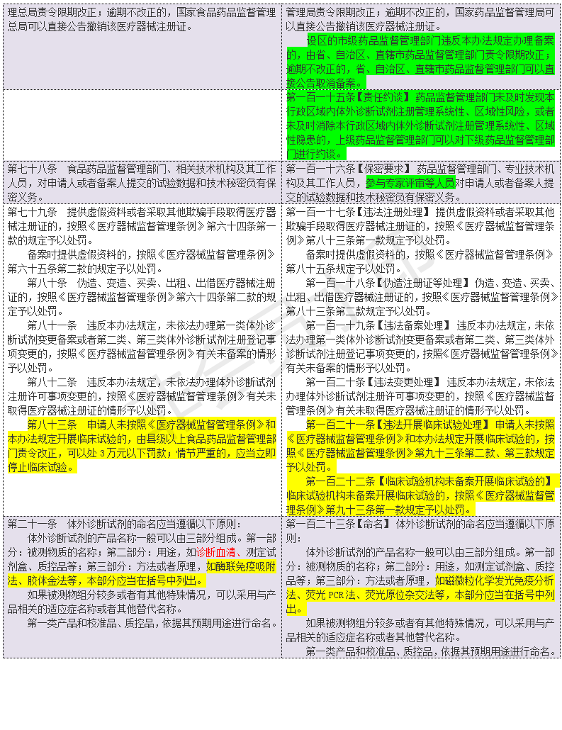 与原办法相比,本办法参照《器械办法》对共性内容进行了修订,此外,体外诊断试剂特殊内容主要变化如下: