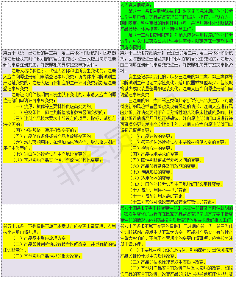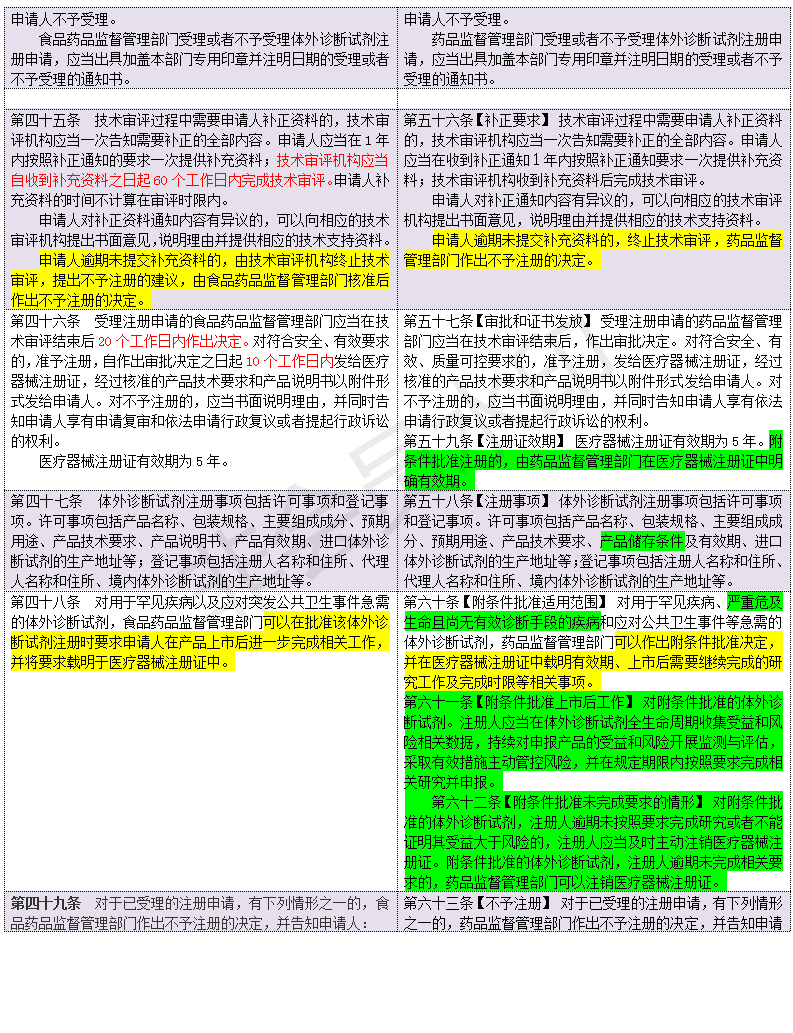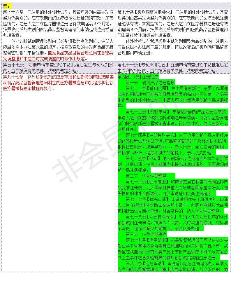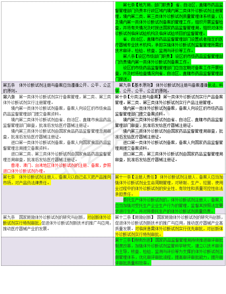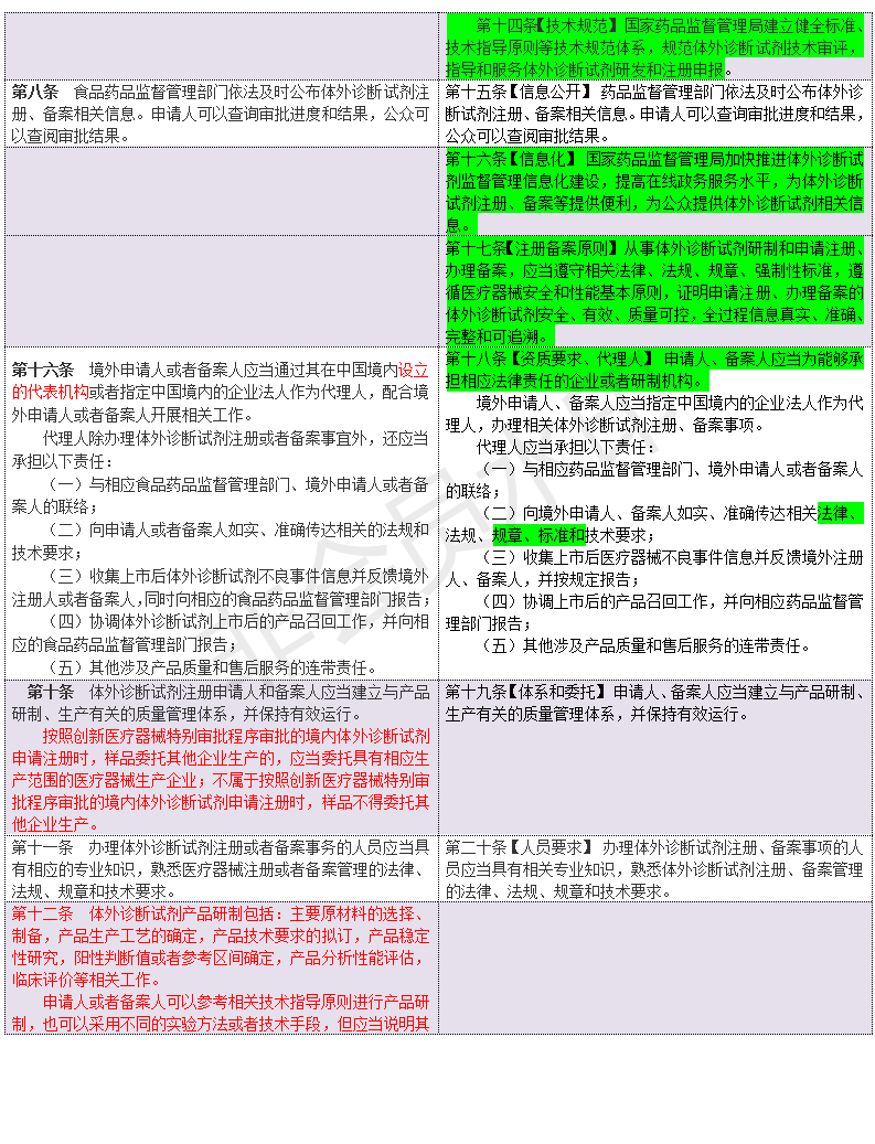 与原办法相比,本办法参照《器械办法》对共性内容进行了修订,此外,体外诊断试剂特殊内容主要变化如下: