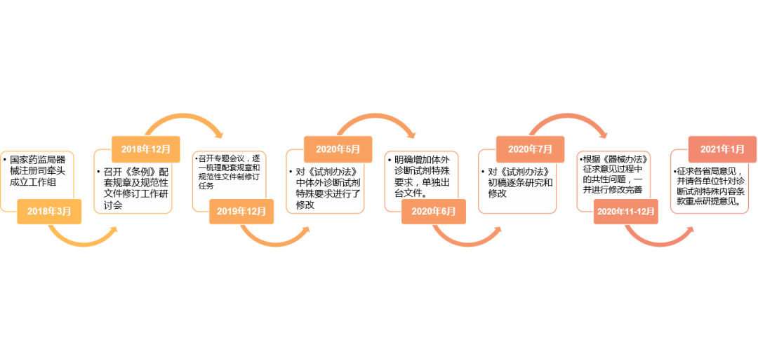 原《体外诊断试剂注册管理办法》经2014年6月27日国家食品药品监督管理总局局务会议审议通过,2014年7月30日国家食品药品监督管理总局令第5号公布,于2014年10月1日正式施行。尽管在2017年1月,《体外诊断试剂注册管理办法修正案》对分类规则进行了调整,为日后分类规则和目录调整留出了空间。但是,随着体外诊断技术的发展和体外诊断产品使用量的增加,原《体外诊断试剂注册管理办法》越来越难以适应体外诊断产业发展需要以及临床使用和监管的要求。