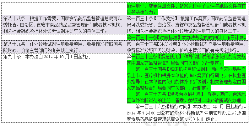 一是删除了体外诊断试剂产品分类涉及的4条内容,拟另行出台规范性文件予以规定。