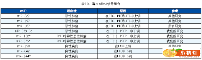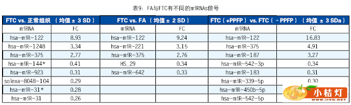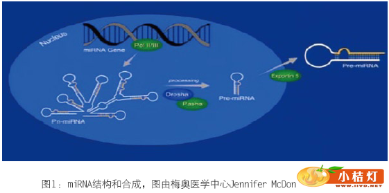 | 明尼苏达州罗切斯特市梅奥医学中心 分子检测用于诊断甲状腺癌还有进步的空间。2013AACC年会上Alicia Algeciras-Schimnich博士发表了题为“microRNA:甲状腺癌诊断的新兴生物标志物”的报告。本文从microRNA入门,microRNA作为疾病生物标志物和microRNA在甲状腺癌中的作用等两个方面展开描述。 一、microRNA介绍 microRNA(miRNA)是一类内源性的非编码RNA序列(包含18-24个核苷酸),调节基因表达从而控制细胞过程,包括细胞增殖、细胞分化和细胞凋亡。miRNA的特异性在于只通过24个核苷酸序列的6-7个核苷酸介导,所以单一miRNA可潜在识别上百个靶基因。大量研究表明很多疾病出现miRNA表达改变,包括恶性肿瘤。近期,据报告在体液(主要是血液)中发现的循环miRNAs是很有价值的疾病生物标志物。 miRNA基因通常是在核内由RNA聚合酶II 或 Ⅲ(Pol II或Ⅲ)转录成多茎环结构(primiRNA)。primiRNA在核酸酶Drosha和其辅助因子Pasha的作用下分裂成单茎环结构pre-miRNA。RNA–GTP和exportin 5(输出蛋白5)将pre-miRNA输送到细胞质中。 ![]() 输送到细胞质的miRNA被进一步处理为成熟miRNA分子(黄色表示)。成熟miRNA结合到RNA诱导沉默复合物(RISC)。成熟的miRNA结合到与其互补的mRNA的位点通过碱基配对调控基因表达。根据miRNA与mRNA的互补程度,可能发生两种情况。如果miRNA与靶位点完全互补,那么这些miRNA的结合往往引起靶mRNA裂解。与靶mRNA不完全互补的miRNA在蛋白质翻译水平上抑制其表达。三分之一的人类基因是以这种方式调节的。因此,通过miRNA这个微调机制细胞可以控制标准转录-翻译范例以外的基因表达。 ![]() 二、microRNA标志物 1、miRNA标志物的优势 如果miRNA的靶标是mRNA,为什么不用mRNA代替中间的miRNA呢?分析miRNA的优势在于:第一,miRNA比mRNA稳定得多。循环miRNAs可在室温下稳定至少24小时。大家普遍认为miRNA的稳定性是因为miRNA分子比mRNA分子小。还有大量研究表明内源性miRNA免于降解。第二,miRNA存在于很多组织和体液,分子小,易于提取。但是,很难从福尔马林固定、石蜡包埋(FFPE)组织中提取良好品质的mRNA。至于体液,miRNA不仅存在于血清、血浆,还存在于尿液、羊水、CSF等。第三,与成千上万mRNA相比,miRNA的数量有限[1852个前体,2578个成熟miRNA(miRBase,2013年7月11日)]。 2、miRNA标志物的劣势 为了使临床实践成功引入miRNA分析,有些问题尚待解决。miRNA浓度非常低,尤其在检测血清、血浆或其它体液,或者企图检测细针抽吸活检玻片的miRNA时,很难获得可靠定量。这个领域的不成熟性也不容忽视,技术问题包括分析前问题(溶血),miRNA提取,检测方法和标准化。 3、miRNA提取/定量方法的变异性 我们对miRNA提取,逆转录(RT)和实时定量PCR程序(qPCR)对miRNA定量变化的影响感兴趣。我们从捐赠者获得血样,分离血清,用基于吸附柱的miRNA提取方法一式三份提取血清。对每份提取物进行一式三份逆转录,然后进入实时定量PCR程序。一个miRNA共产生27个反应,3个个体共得出81个qPCR结果。 ![]() 3个内源性miRNA(miR-15b、miR-16、miR-24)与加入秀丽隐杆线虫的对照miRNA(celmiR-39)的批内差异如表1总结。每个miRNA的批内差异各不相同,但是大部分差异来源于提取阶段。外源性miRNA表现出最高批内差异。外源性miRNA不免于降解,降解程度和提取效率不同。因此,秀丽隐杆线虫miRNAs可能不适于作为外部对照。 ![]() 如图4所示,miR-16、miR-24、miR-122是内源性miRNA,cel-miR-39是对照miRNA。对于miR-16,25 mg/dL血红蛋白的△CT值是2,1200 mg/dL血红蛋白的△CT值增加到7。miR-24的情况与miR-16类似。miR-122和cel-miR-39不受影响。所以,溶血对某些miRNAs水平的影响显著。红细胞中浓度较高的miRNAs受溶血影响更大。 ![]() miRNA在血清和血浆中差异表达。图5是根据CT值与血清和血浆miRNA绘制的。CT值越小,miRNA浓度越高。血浆样品miR-15与miR-24水平显著高于血清。研究发现血浆miRNA水平较高是由于血小板污染所致。在这两种标本类型中外源性miRNA没有表达差异。该实验表明我们在临床实践中实施这些分析物时要注意血清和血浆样品是不可互换的。 ![]() 当前用于分析miRNA的方法主要分为3类,深度测序、微阵列检测和qPCR检测。对于试图发现新miRNAs和分析miRNA SNPs的实验,测序是技术选择。但是这项技术成本非常高而且数据复杂性也高。对于临床实验室人员来说,他们最多执行的是实时PCR检测,分析一小部分miRNAs。这样不能发现新miRNAs和SNPs信息,但是能够根据差异表达辨别良性或恶性样品。微阵列检测主要用于初始实验,在不同疾病阶段分析大量miRNAs。 ![]() miRNA在不同种类的癌症中上调或下调。不管癌症类型,总有一个常见miRNA上调和下调。例如,miR-21的生物功能是促进生殖,侵袭和迁移,所以在多种癌症中其调节是伴随恶性转化的。另一方面,miR-145在很多种癌症中因恶性转化而下调,与其作为肿瘤抑制基因的功能相符。 ![]() 大量miRNAs不仅是诊断多种癌症的标志物,还有其他作用,包括预后、治疗效果预测等。例如,在预后方面miR-196a-2表达上调预示胰腺癌存活率差,而miR-221和miR-222上调与乳腺癌病人抗他莫昔芬有关。近期Janssen等人在新英格兰医学期刊上发表的一篇文章表明miR-122的反义寡核苷酸使miR-122隔离从而抑制丙肝病毒复制,研究结果非常有价值。 ![]() 4、miRNA检测 市场上可购买到有限数量的mi RNA检测,针对细胞学或组织样品,尚无法检测体液循环miRNA。本文介绍两个产品,miRInform Pancreas和Rosetta Lung Cancer 