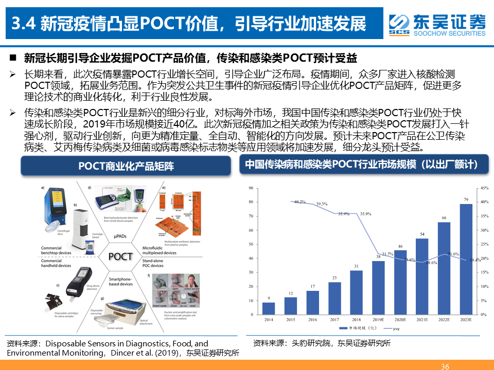在此次疫情中,POCT以其便携性和快速的特点,在新冠检测方面发挥重要作用,抗原抗体检测产品对今年我国新冠试剂的出口量做出巨大贡献。
