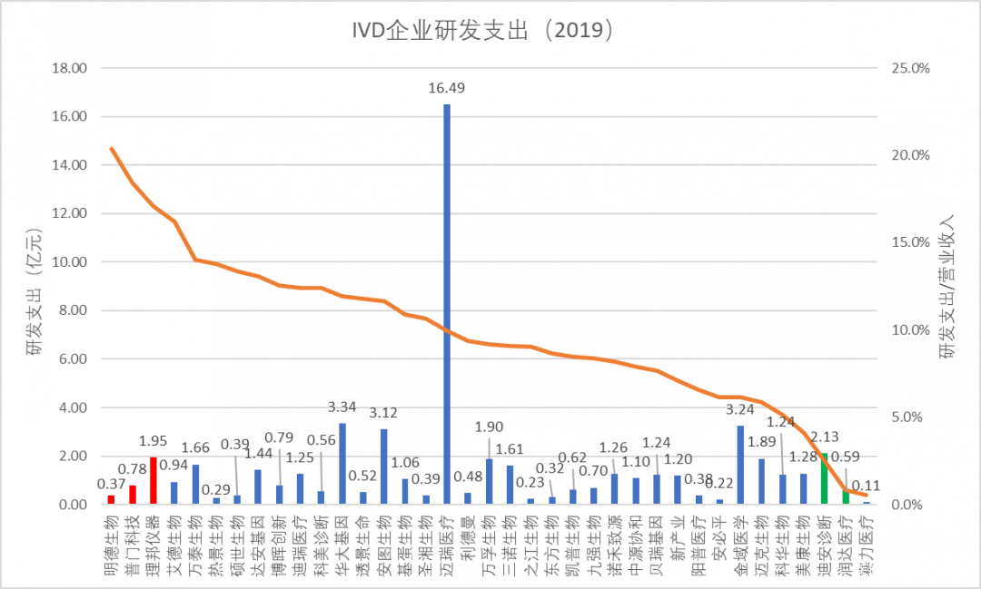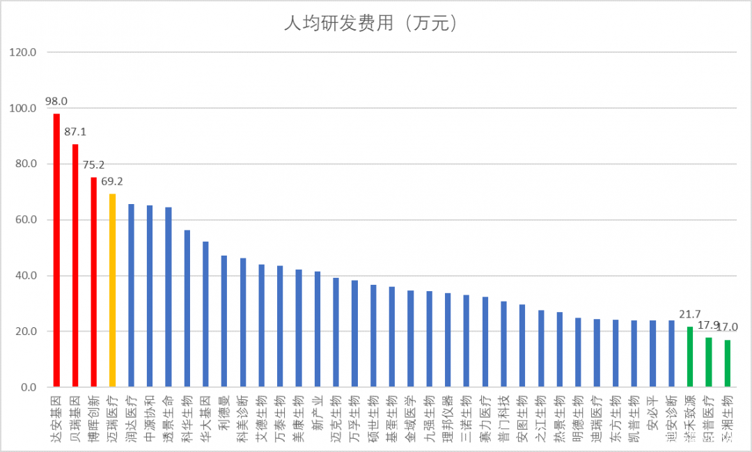 上篇文章➡️IVD企业销售薪酬哪家强?分析了各上市IVD企业一线打仗的人——销售的薪资水平。这期我们继续从年报数据多维度对各公司研发投入进行对比分析,希望对各位有所启发。 老规矩,有几点提前交代下: 年报口径,研发支出分为两部分,研发费用和研发支出资本化金额。研发费用要求进行详细披露,比如职工薪酬、折旧摊销、直接材料等。 而资本化支出,表示企业认为这部分钱有直接成果,大概率是拿到了专利或者注册号。这部分钱只有总数,没有详细披露。本文研发支出数据为研发费用和研发支出资本化金额合计。 年报一般称为技术人员,或研发与技术人员,或研发人员。并不是所有技术人员都搞研发,比如安装和售后维保可能也被归为技术人员。 主体是试剂设备生产商,同时包括三方检验服务,如金域医学,还包括流通商,如润达医疗。迈瑞医疗是国内医疗器械老大,放进去做个尺子。 这里所有的数据都是2019年年报数据,那时新冠疫情还没来。2020年的年报有人比较拖沓,还没到齐,等到齐了,我会再做个对比。 闲话少许,书归正传 数据来源:2019年报 从绝对量看,华大基因、金域医学、安图生物研发支出最高,均在3亿以上。有一半的企业研发支出小于1个亿。 华大基因分子诊断领域的绝对龙头,有些“华小”做他一个细分业务,也做到上市。2019年营业收入28亿元。分子诊断是体外诊断的热门技术,新冠疫情东风正盛。 金域医学三方医检的绝对龙头,病理业务独步天下。2019年营业收入52.69亿元。 安图生物做化学发光起家,横向拓展生化诊断和微生物检测。2019年收入26.79亿元。 赛力医疗主营代理销售,2019年收入18.31亿元。 安必平做液基细胞学耗材起家,目前全面布局病理科业务。2019年收入3.55亿元。 之江生物主做病原体分子诊断,2019年收入2.59亿。2020年依靠新冠收入暴增到20亿以上。 研发支出绝对额跟企业体量相关,业务体量大、条线多,研发投入绝对量高也没啥奇怪,一如高高在上的迈瑞。研发在企业经营中的重要程度,研发支出/营业收入,或许是个不错的指标。 数据来源:2019年报 理邦仪器业务条线较多,包括监护仪、心电图机、B超、体外诊断,其中体外诊断是第四大业务。与迈瑞多线对战,想来压力巨大。 普门科技虽然体量不大(2019年收入4.23亿),但涉及领域众多,治疗康复类(光子治疗仪、空气波压力治疗仪、红外治疗仪、高频振动排痰仪、多功能清创仪、冲击波治疗仪)、体外诊断类(特定蛋白分析、糖化血红蛋白分析、电化学发光、免疫荧光)。 博晖创新2019年6亿收入,3亿血制品,3亿体外诊断(微流控分子诊断)。 赛力医疗、润达医疗和迪安诊断都是代理销售为主业的公司。研发支出占比低是自然。 一头是业务条线较多的企业,一头是代理为主的企业,业务聚焦的企业都在中间(分析透彻,加鸡腿!)。 数据来源:2019年报 人均研发费用=研发支出/(研发和技术人员)。 研发支出没啥问题,会计准则白纸黑字写的很清楚。研发和技术人员是用数据库导出的,没有从财报上一个一个扣下来。所以企业的试剂研发人员可能低于这个数据,也就是,真实的人均数据大概率高于图中的数据。 达安基因主营分子诊断业务和三方检验,兼营金融业务。2019年170个研发人员花了1.44亿。 贝瑞基因以二代测序为平台,专注产前诊断和肿瘤分子检测。2019年136个研发人员花了1.2亿。 博晖创新2019年106个研发人员花了8千万。 圣湘生物主做病原体分子诊断,2019年229个研发人员花了3895万。 阳普医疗主做医学实验室诊断及医疗信息化建设,2019年191个研发人员花了1291万。 诺禾致源主要为科研机构和医疗机构提供二代测序相关服务。2019年580名研发和技术人员花了5253万。 再次强调,这部分数据来自年报,不同研发人员数据口径可能存在差异。考虑到研发人员学历普遍偏高,十万年薪怎么都得有,人均研发费用才20万左右。总觉得有点奇怪。 |