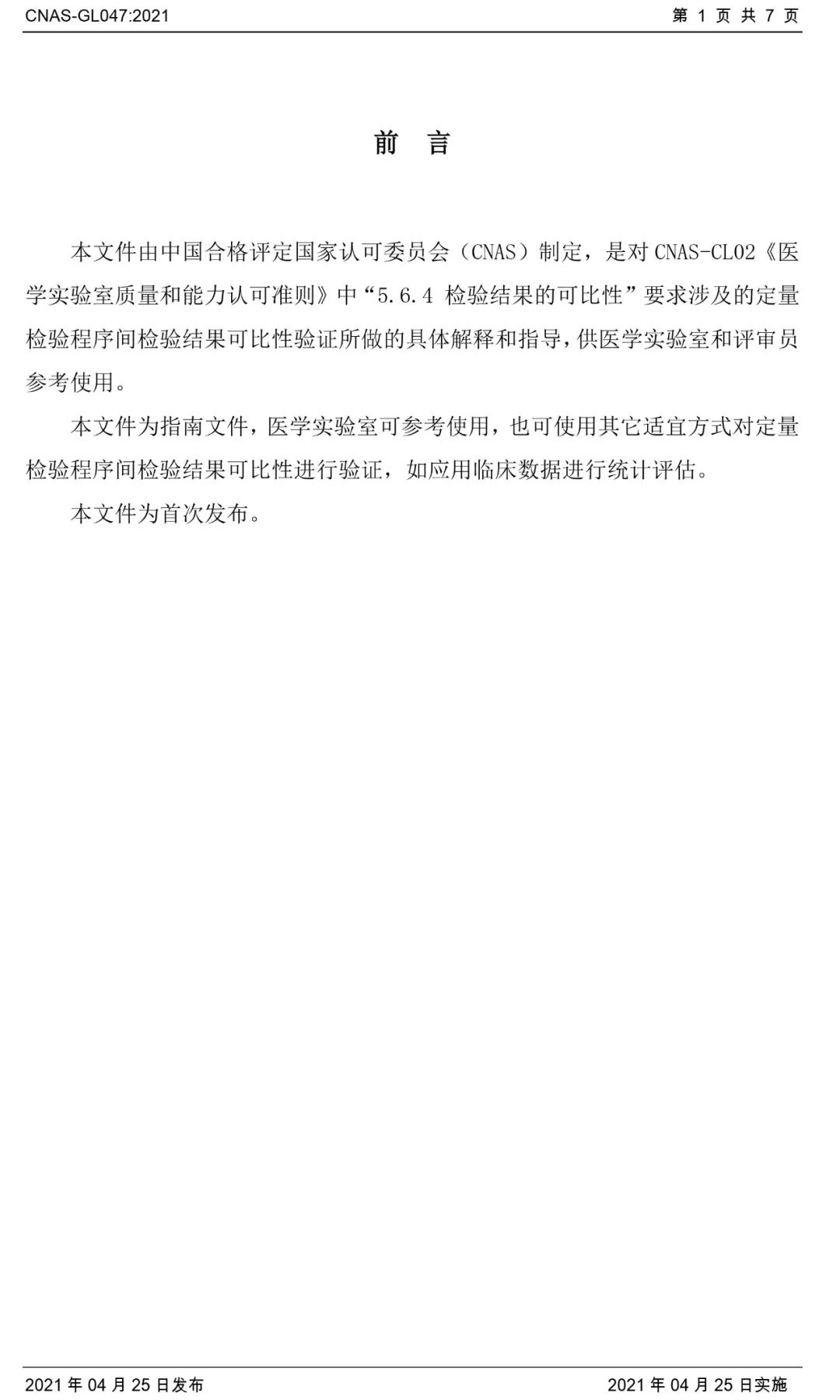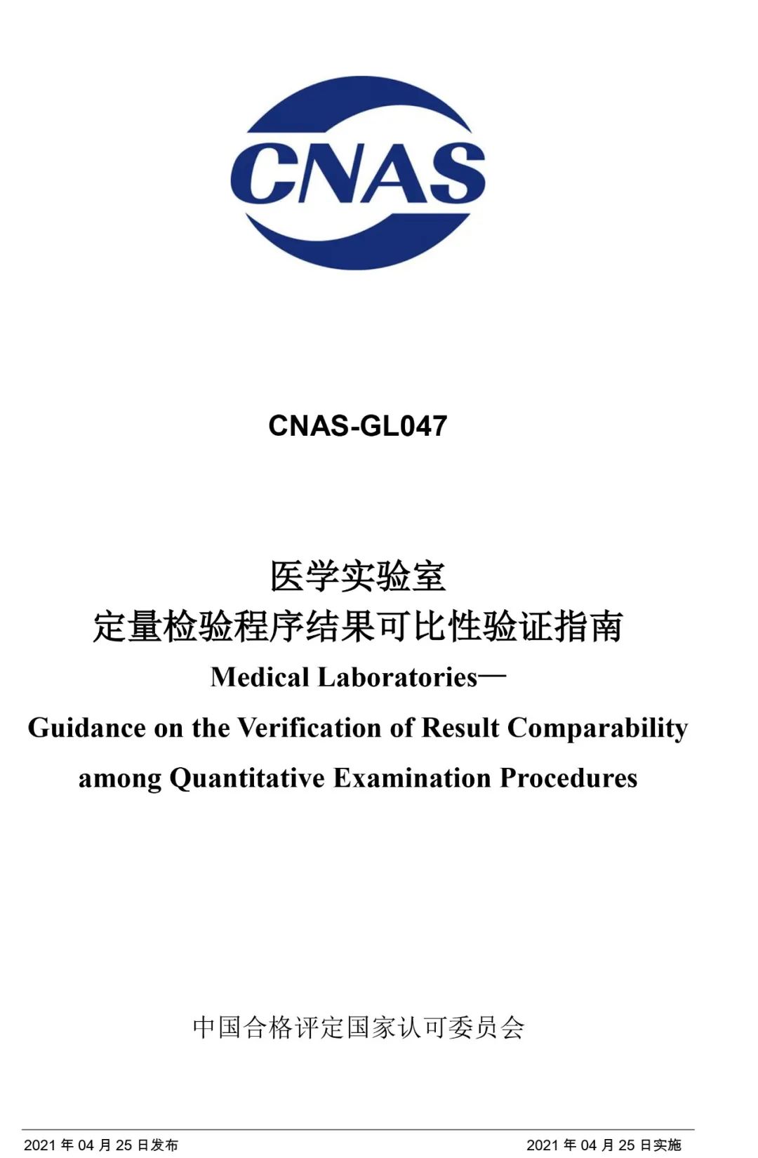 5月11日,中国合格评定国家认可委员会发布了《医学实验室定量检验程序结果可比性验证指南》,指南适用于申请认可或已获认可的医学实验室(以下简称“实验室”)在相同或不同地点,使用多个相同或不同的定量检验程序、检测系统、检验方法等(通称“检验程序”)检测同一分析物(检验项目)时,验证检验结果间的可比性,也可供评审员在现场评审过程中参考使用。 与《WS/T 407-2012医疗机构内定量检验结果的可比性验证指南》比较来看,新指南不再限定在同一医疗机构内的临床实验室。在判断标准中,新标准规定:实验室应根据检验项目的预期用途和性能要求,制定适宜的检测系统结果间可比性的判断标准,还可参考制造商或研发者声明的标准、国家标准、行业标准、地方标准、团体标准、公开发表的临床应用指南和专家共识等进行标准的指定。验证结果应满足实验室制定的判断标准。这也就给了实验室一定的自主性来制定判断标准。