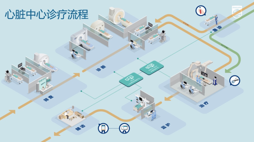 本次CMEF,致力于健康科技的飞利浦更是躬身入局,直击本土重点疾病诊疗痛点,势以“价值型医疗”为锚点,迈向解决方案升级转型的“深水区”! “升级版”解决方案,360°围攻临床痛点 2016年,飞利浦启动战略转型,从影像诊断到疾病诊疗全流程,从提供产品到提供解决方案,几经更迭与进化,力争成为一家持续为合作伙伴解决临床痛点的“价值”供应商。 “我们的目标是让‘技术’真正服务于医护人员和患者,提升医疗系统提供服务的效率和质量。”飞利浦大中华区副总裁、整体解决方案中心总经理、战略合作负责人梁建球表示。 然而,长期的价值赋予并不是一件容易的事,需要持之以恒的决心以及持续不断的技术革新。 为实现这个目标,五年来,飞利浦中国加快脚步,不断引进全球创新成果,并携手包括产、学、研、用在内本地生态系统,精雕细琢,打磨出了集成“智能设备、系统、软件和服务”在内的数个整合型解决方案。 这次CMEF展出的四大解决方案,正是飞利浦五年磨一剑的心血与成果。 1、心血管智慧全程解决方案 聚焦心血管疾病,微创手术辅助“神器” 心血管病患病率不断上升是中国人的第一大“痛”,随着技术的进步,近年来,TAVR、二尖瓣、三尖瓣置换、左心耳封堵术等微创介入导管技术方兴未艾,成为临床热点。 针对以上冠心病和结构性心脏病诊疗流程,飞利浦提供了从疾病早期诊断,到疾病微创治疗,再到疾病术后随访全程覆盖的解决方案,成为心脏病微创手术的辅助“神器”。 以结构性心脏病解决方案为例: