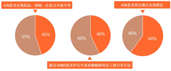 带状疱疹后神经痛会严重影响患者生活的方方面面,让人焦虑、抑郁、厌食、睡眠障碍、身体疲乏、体重下降、无法正常工作或生活、甚至想要自杀。