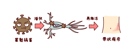 带状疱疹是由潜伏在患者体内的水痘-带状疱疹病毒再激活所致