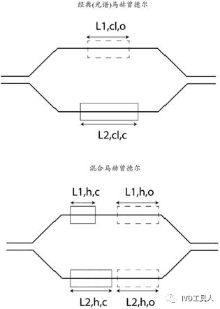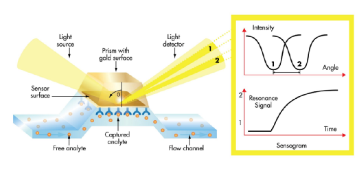 干涉检测技术(BLI,马赫-曾德尔干涉仪) 先来复习下基础光学知识,物理学中,干涉(interference)是两列或两列以上的波在空间中相遇时发生叠加或抵消从而形成新的波形的现象,光学上我们比较熟悉的当然是双孔干涉实验: 采用两条狭缝将一束单色光束分成两束后,再让它们在空间中的某个区域内重叠,将会发现在重叠区域内的光强并不是均匀分布的,会形成干涉条纹。 当一束光照射向薄膜,由于折射率不同,光会在薄膜的上界面与下界面分别发生反射,这两束反射光因相互干涉而形成新的光,这现象称为薄膜干涉。 由于光的波动性,两个界面的反射光可能干涉相长(强度增加)或干涉相消(强度减小),这取决于它们的相位关系。相位关系取决于两个反射光不同的光程,而光程取决于薄膜厚度,光学常数,和波长。 举一个生活中常见的例子,一个肥皂泡就是一个薄膜,但是它的表面厚度不均匀。而光是由不同波长的光波组成的,不同的颜色就从表面上反射出来,通过观察这些不同颜色我们就可以知道薄膜厚度的差异。 谭博士开发的生物膜层干涉技术(Biolayer interferometry,BLI)就是基于薄膜干涉原理的非标记检测技术。 未结合目标分子 结合目标分子后 通过在光纤末端修饰一层生物分子形成这层生物膜,白光照射过来后形成薄膜干涉,通过测量反射光光谱就可以发现不同波长的强度增加和减小。 当待检测分子被生物膜上的生物分子捕获后,这层生物膜厚度增加,导至干涉光波发生相对位移,通过检测光谱位移的大小Δλ就可以得知结合的分子多少。 https://en.wikipedia.org/wiki/Bio-layer_interferometry 除此之外,前段时间讨论火热的Antelope Dx的POCT新冠抗原检测产品则是一种采用了马赫-曾德尔干涉仪原理开发的无标记检测技术。 马赫-曾德尔干涉仪可以用来观测从单独光源发射的光束分裂成两道准直光束之后,经过不同路径与介质所产生的相对相位移动。 (Antelope专利图) Antelope Dx通过将马赫-曾德尔干涉仪微型化做成了光子集成电路,通过读取经过参考臂和传感臂的光波产生的相移就可以检测到传感臂上捕获的靶标分子。 笔者通过与光子芯片领域的大佬同学咨询后得知,目前如果要实现专利中这种干涉仪结构,批量生产条件下单片芯片成本大概在10块钱人民币这个量级,加上微流控部件,单个耗材成本也并不是高不可攀。 表面等离子体共振技术(Surface plasmon resonance, SPR) 入射光从一种介质A以临界角入射到另一种介质B时,在界面发生全反射现象,在介质B中会有消逝波产生。 当介质B为金属薄膜时,消逝波的横波与金属薄膜表面自由电子发生相互作用,激发表面等离子体波。 当表面等离子体波的波矢与入射光沿介质界面方向的波矢分量相同时,消逝波和表面等离子体波产生耦合现象,光能发生转移,此时入射光的能量被吸收,从而使全反射时的反射光能量大大减弱到一个极小值,此时对应的入射光波长为共振波长,对应的入射角θ为SPR角。 SPR传感器一般有两套检测方案,一套角度调制型SPR测量SPR角,一套波长调制型SPR测量共振波峰。 金属表面待测介质发生变化,引起金属表面折射率发生变化,影响表面等离子体波传播,使得共振峰或SPR角的角度发生变化。 波长调制型SPR 角度调制型SPR https://www.bruker.com/fr/products-and-solutions/surface-plasmon-resonance.html SPR传感器就是利用这个原理来进行检测的,将生物分子固定到金属薄膜表面,当生物分子识别并捕获目标分子后,作为待测介质的有效折射率会发生变化,通过计算SPR角或共振峰的位移,就可以得到所需的检测信号。 1990年Biacore公司研发了第一台商用SPR检测仪器,从此SPR传感技术逐渐应用于生物、物理、化学研究以及环境检测、食品安全等各个领域,并且发展迅速。 SPR的通量一般来讲不高,都是一个实验接一个实验的进行,如果需要高通量,目前可以通过表面等离子体共振成像技术(Surface plasmon resonance image, SPRI),即将光束扩束能覆盖整个芯片,芯片上类似蛋白芯片做区域划分修饰不同分子,检测器换成CCD相机就可以实现多分子同时检测。 (Analytical Chemistry, 2014, 86(17), 8857-8864) 简单的光路系统,使得SPR技术的POCT化是挺有潜力的。很多研究利用手机的闪光灯甚至是屏幕做光源,相机做检测器就可以实现生物分子的定量检测。 另外一点,SPR耗材的成本主要集中在芯片的这块,但是SPR芯片一般是可以重复利用,之前科研上都是洗脱、修饰重复使用,如果能做好耗材回收,可能这块也有一定的降低成本可能性。 (Angewandte Chemie International Edition, 2012, 51.46, 11585-11588.) 体声波(Bulk Acoustic Wave,BAW)谐振器 不同于前面两种光学传感器间接测量目标分子,BAW谐振器是一种直接的质量检测传感器。 通过施加交变电场,器件中的压电晶体会在电场方向产生形变,从而在压电振荡堆中激发了体声波。器件表面吸附待检测分子后,表面压力发生变化进而会造成其谐振频率的变化。 QCM是一种较为常用且十分成熟的体声波器件,利用了石英晶体的压电特性。 当石英晶振片工作电极上出现沉积、吸附等现象,发生质量变化,会导至石英晶振片振荡电路的输出电信号发生频率变化,从而可以通过电信号记录设备获得检测信号。 理论上来说可以测量到ng级别的质量变化。根据Sauerbrey理论方程,固有谐振频率为10 MHz,工作电极敏感区域为直径6 mm的圆石英晶振片,表面发生1 μg的质量变化,晶体谐振频率会下