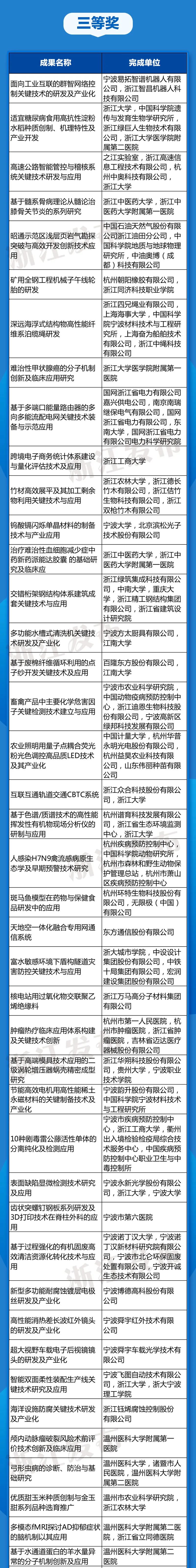 2021年6月15日,浙江省科学技术奖励大会在省人民大会堂隆重举行,会上颁布了301项“2020年度浙江省科学技术奖”。其中浙江科技大奖1项,由潘云鹤院士获得;299项成果(项目)获省自然科学奖、技术发明奖和科学技术进步奖,其中一等奖44项、二等奖90项、三等奖165项;国际科学技术合作奖1项,由英国诺丁汉大学获得。 《新型冠状病毒肺炎防控关键技术研究》成果荣获“浙江省科学技术进步奖一等奖”,涉及的体外诊断企业有: 复星诊断科技(上海)有限公司 宁波海尔施基因科技有限公司 杭州优思达生物技术有限公司 该成果其他的获奖单位包括:浙江省疾病预防控制中心、北京科兴中维生物技术有限公司、嘉晨西海(杭州)生物技术有限公司。 荣获浙江省科学技术进步奖一等奖,是对科技水平的充分认可,更是对其学术价值的重要展示。 附:全部榜单 向上滑动查看全部榜单 -END- |