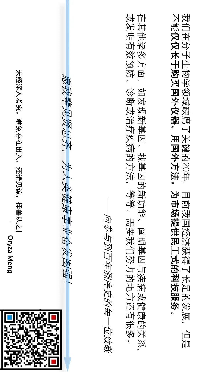 回顾历史,是为了更清晰的把握发展脉络,更加坚定和正确的走在前行之路上。正如饶毅在回答“中国的人类基因研究为什么弱?”的文中所讲,我们在分子生物学领域缺席了关键的20年(1953-1973),目前我国经济获得了长足的发展,但是不能仅仅长于购买国外仪器、用国外方法,为市场提供民工式的科技服务。在其他诸多方面,如发现新基因、找基因的新功能、阐明基因与疾病或健康的关系,或发明有效预防、诊断或治疗疾病的方法,等等,需要我们努力的地方还有很多。