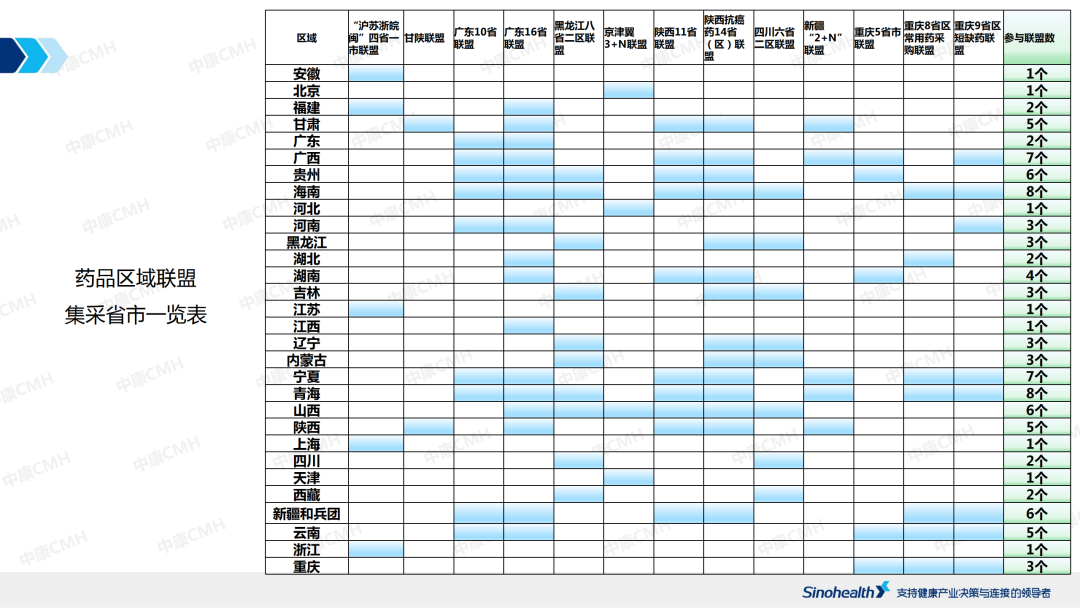 随着带量采购实施三年以来,“内蒙14省联盟”、“陕西10省联盟”、“六省二区联盟”、“四川7省联盟”、“广东7省联盟”等多个超大区域性联盟、跨区域性联盟相继试水集采,省际联盟逐渐成为带量采购主力军。 下面,我们整理了重点区域联盟的采购范围、中选规则、最新动态等信息,供业内一览。