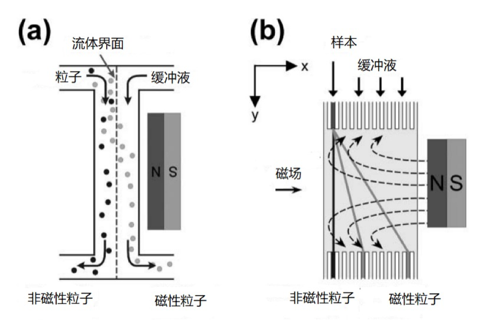 这是一个技术专栏,在这个专栏当中,由全球诊断技术大咖为大家带来诊断技术开发方面的技术谈谈,这是本系列的第四篇,我们非常有幸邀请到了德国弗劳恩霍夫光子微系统研究所的Christine Ruffert主任为带来磁珠技术的讲解。 1、磁珠应用的实践 在早期阶段,生化样品混合物是通过批处理进行分离的,包括过滤、离心、色谱和电泳。然而,当微流控技术出现在舞台上并在世界各地的研究小组中获得越来越多的关注时,微流控设备中的连续流动分离方法被开发出来,作为批处理过程的替代。 已有大量的分离方法被报道,包括大规模方法的微型化模型以及只适用于微流控系统的方法。Pamme对通过外部场产生的力进行的微流控分离过程进行了描述和比较。 在实际使用中,最好是将样品从连续的流动中分离出来,而不是从静止的状态中分离。这样,可以实现更高的产量,并且样品和废物可以实时分离。已经提出了各种用于连续流动分离的方法。 例如,磁性颗粒可以通过垂直于流动方向的磁场从片上的连续流体中偏转。在这种情况下,偏转的程度不仅取决于磁场强度,而且还取决于样品中颗粒的磁感应强度。这种基于磁泳的分离方法可以应用于制造后的磁性微粒子和纳米粒子的分拣,或者是装有磁性标签的细胞。 图7直观地展示了在微流控系统中通过垂直于水流布置的磁场引起的偏转而从连续的水流中进行磁分离的原理。 图7. 从连续的流动中进行磁分离:施加垂直于流体流动方向的磁场,导至磁性颗粒或磁性标记的分子发生偏转。(a)通过两个出口将非磁性颗粒与磁性颗粒分离;(b)有多个出口的系统。 微流控分离方法的特点是连续注入、实时监测和连续收集。连续流动分离方法的一个基本特征是使样品成分偏离主要流动方向。这可以通过外部电场、磁场、声场或光场提供的力来实现,或者通过在层流中安排障碍物使某些样品成分在空间上偏转。 在大多数情况下,需要附着像磁珠这样的磁性成分,因为特别是生物大分子不容易受到磁性操作的影响,只有极少数例外(如具有一定铁含量的红细胞和趋磁细菌)。 当应用磁力进行颗粒分离时,离子或表面电荷以及pH值都不可能对操纵的敏感性产生影响。此外,磁操作大多不会修改或损坏样品,因此很适合生物大分子。因此,磁分离在微流控领域呈现出一种通用的工具。 2、总结 微型整体分析系统(TAS)的提出,也被称为片上实验室(LoC)系统,启动了研究活动的爆炸性增长,以开发小型化系统,允许在单个芯片上进行多重操作。宏观实验室的所有功能都将被集成在一个信用卡大小的设备上。 LoC方法为研究低至细胞水平和分子尺度的生物相互作用提供了工具,并为生命科学和相关研究领域的应用提供了巨大潜力。芯片上的实验室的主要进展是微型化和可运输性,这使其适合在发展中国家或在医疗紧急情况下使用。 此外,样品量和试剂的消耗也被减少到最低限度。因此,成本也大大降低。快速的反应时间和接近于零的废物量为标准的实验室分析方法提供了一种有竞争力的方法。在实际应用中,处理低液体体积的系统可以实现复用、自动化和高通量筛选。 迄今为止,广泛发现的磁珠的应用领域包括从免疫分析到细胞操作、DNA提取、磁共振成像、热疗到胶体纳米晶体中的整合。特别是在微型化微流控系统领域,磁性颗粒和纳米材料发挥着主导作用。 这种超顺磁性颗粒无可比拟的优势在于,只需去除外部磁场,就可以关闭样品内部或样品与外部磁场之间的磁互动。此外,磁性操作方法不会损害或改变样品,这在生物医学应用中尤其重要。此外,离子或表面电荷或pH值都不会使操纵的敏感性恶化。 还有一个问题是是否有足够的检测和量化工具,对于像磁珠这样磁性含量和物理尺寸都很小的磁性材料来说,这是一个持久的挑战。其次,在微流控界仍然没有关于配件、接口或基础设施的一致标准,即插即用的组件或工具箱。 在大多数情况下,都是采用自己的解决方案。由英国剑桥商业创新中心组织的微流控联盟打算确定和推广标准的前体(如连接器和芯片支架)。最近,一个在线讨论被发布,提出了微流控连接器的ISO标准。 从开发水平到工业使用和接受的时间尺度是相当长的。 也许,一个瓶颈是微流控技术的高度多学科性,特别是与磁珠的使用相结合,交叉了工程、物理、生物化学、纳米技术和生物技术。例如,无机化学(磁珠制备所需)、生物化学以及医学科学(为磁珠配备与样品需求相匹配的适当功能化)都需要高水平的科学和实践知识。 更重要的是,应该熟悉纳米磁和磁性材料的基本物理原理。这不仅需要训练有素的工作人员,至少在开发阶段,还需要一个多学科的团队。 另一个障碍可能与微流控芯片的制造有关:虽然LoC设备的制造非常简单,但母模的制造通常需要一个洁净室设施。这可能是另一个障碍,特别是对于中小型企业来说,要进入微流控技术领域。 然而,一般来说,微流控系统的持续使用和繁荣的未来是可以预测的,特别是对于磁珠这类材料来说,它可以被认为是各种医疗任务的神奇疗法,或者在一个形象的意义上,是神奇的子弹。 这里使用的“魔法”一词是由于它们独特的甚至是混合的特性与它们的多功能用途相结合,而“子弹”则是根据它们的球形外观。在对生物分析和生物医学进行广泛调查后,现在是发现新市场的时候了,因