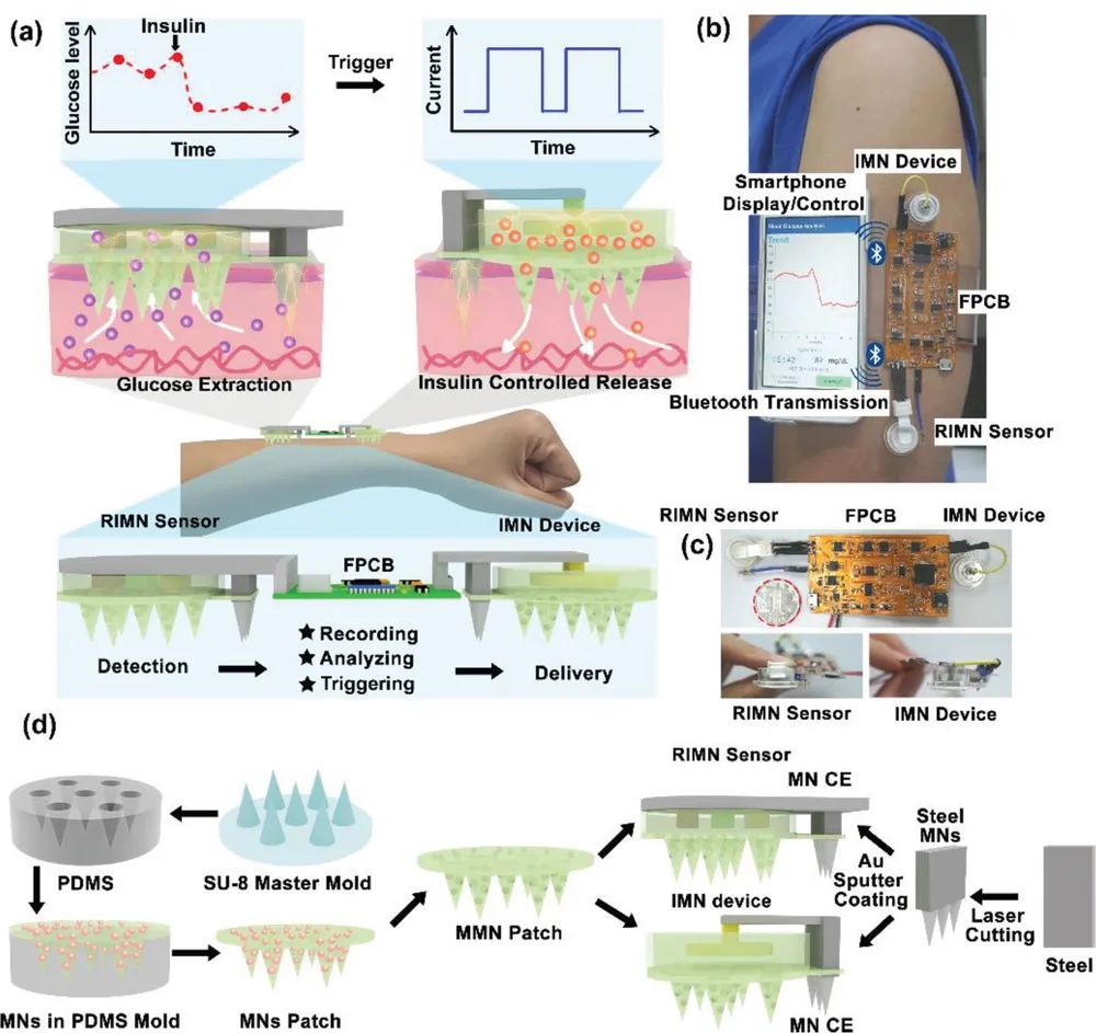 6月13日,中山大学电子与信息工程学院、光电材料与技术国家重点实验室谢曦课题组在Advanced Science上发布了一项重磅成果。课题组首次研发出用于糖尿病的原位监测和治疗,基于介孔微针离子泳的集成可穿戴诊疗一体化系统。