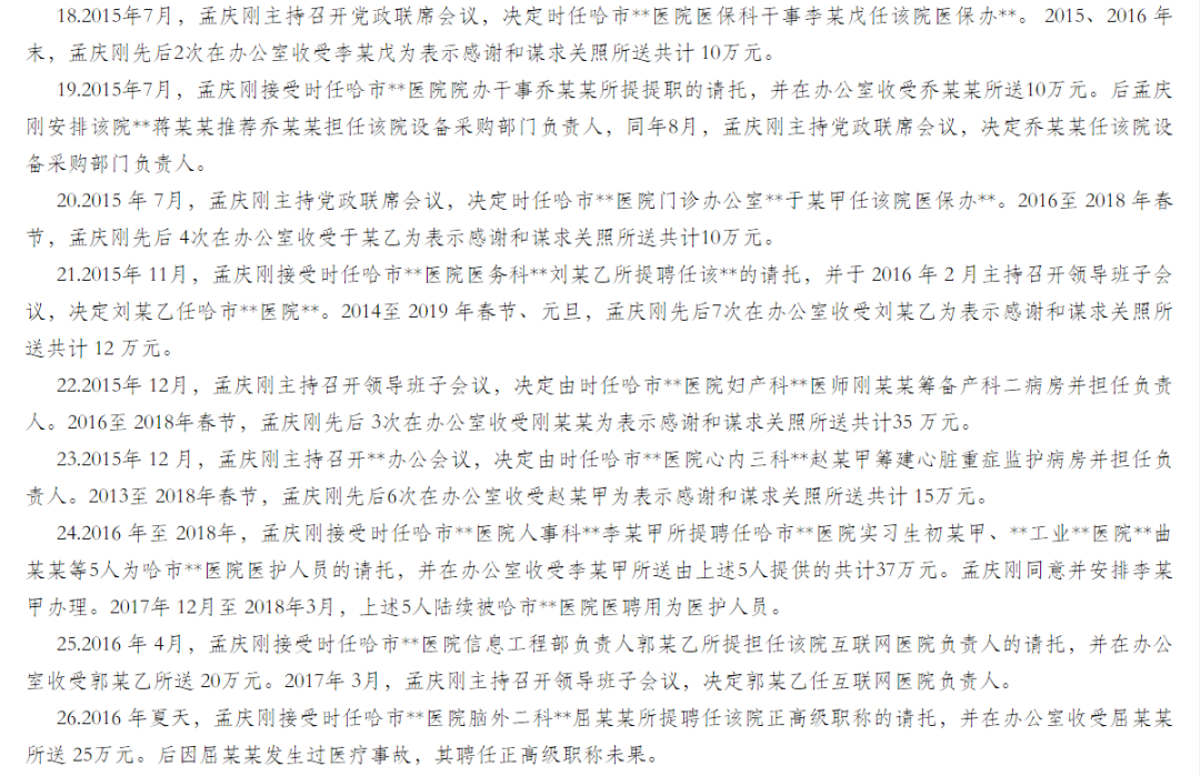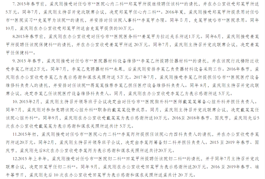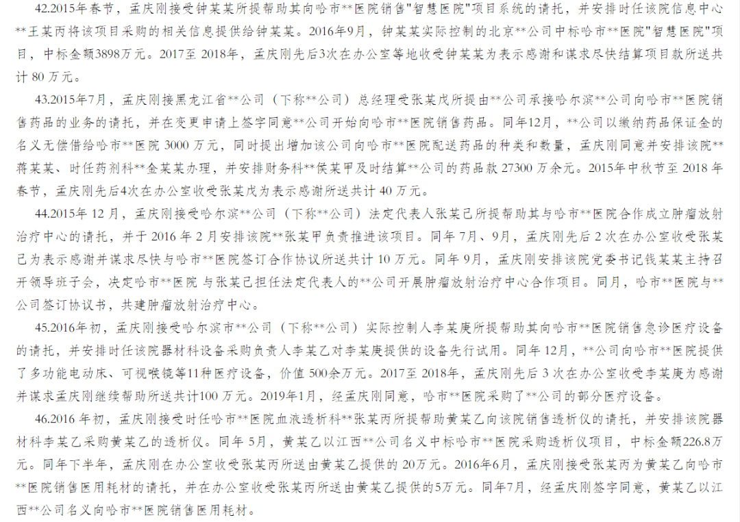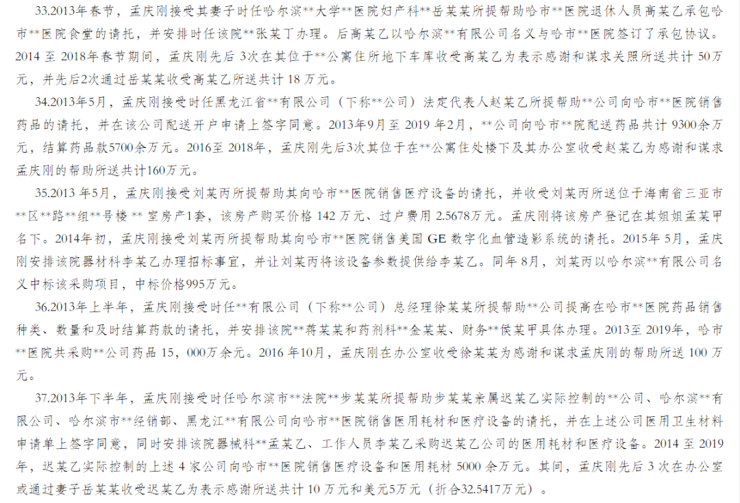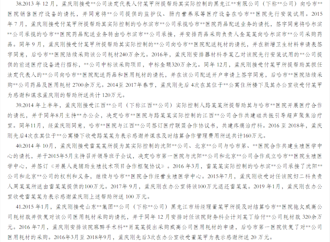 ![]() 光是内部人事安排,孟庆刚就受贿将近800万 文丨杰瑞 2100多万元,哈尔滨第一医院原院长孟庆刚的受贿金额再次刷新纪录。 7月14日,中国检察网公布的一则起诉书,披露了孟庆刚受贿的每一笔细节。起诉书显示,孟庆刚在2013-2019年任职期间,利用职权上的便利,在人员录用、医药产品采购、合作医疗等方面帮助他人谋取利益,并非法受贿共2106.9万元。 图源中国检察网 2020年11月,黑龙江省纪检委网站公告,宣布孟庆刚因涉嫌严重违纪违法正在接受审查;2021年4月,开除党籍;7月14日,起诉书正式公布。孟庆刚一案至此基本尘埃落定。 孟庆刚就任院长的同期,黑龙江省卫生系统曾持续开展多轮公立医院巡查,并先后出台多项政策整顿医生收取患者“红包”或商业回扣的行为,矛头直指医疗系统腐败的核心问题。哈尔滨市第一医院在孟庆刚的带领下,也陆续开展了多项廉洁防控工作,并取得“有效”进展。 然而,谁都没想到的是,孟庆刚才是最需要被“反腐”的对象。 医生收红包即被通报 院长却大肆受贿 在孟庆刚的起诉书中,“办公室”一词总共出现了75次,这是孟庆刚接受大部分贿赂的地点。 在这间办公室里,小到医生的人事调动、职称评定,大到医院开展合作医疗计划、招标采购,只要是带着人民币来见的,孟庆刚似乎无一回绝。 孟庆刚在医院人事任免上掌握大权,多数前来“拜访”孟庆刚的人都是在个人的职称评定或任免上有求于于他。 起诉书显示,在孟庆刚担任院长的6年间,超过30人得到了自己想要的职位,他们回报给孟庆刚的“好处费”则从几千元到30万不等。资金到位后,孟庆刚便凭借院长权力,组织召开领导班子会议,通过合法方式完成人事任免或调动。这为孟庆刚带来了将近800万的灰色收入。 讽刺的是,孟庆刚一面受贿,一面带领医院开展各种反腐倡廉行动。哈尔滨第一医院的官网“廉政防控”板块下,更是发表了众多中国历史上以清廉而流传于世的人物小传。2015年末,医院还在通过“一周自查、一月督查、次月整改、月月问效”的办法,督促各科室加强对医生违纪行为的管理和整顿。 哈尔滨第一医院逐月实名通报每个医生的收受红包情况,被通报医生红包金额从200元到10000元不等。只不过,这些金额远不及孟庆刚受贿一次的零头。 哈尔滨第一医院的确会“反腐”,只是没想到,真正应该反腐的对象,却是医院的院长。 6年2100万 知名医疗器械企业牵扯其中 在检察网公布的这份起诉书中,两项来自GE医疗代理商的行贿显得格外扎眼。 2014年,孟庆刚接受了来自医疗器械代理商刘某的请求,承诺采购前者代理销售的一款来自GE医疗的数字化血管造影系统,相应的条件是:代理商送给孟庆刚一套位于海南三亚的房产,售价142万元。 孟庆刚并没有自己拿下这套房,而是登记在他姐姐的名下。最终,GE医疗代理商刘某的造影系统以995万元的价格顺利中标。 2018年,类似的故事再一次上演。孟庆刚经朋友搭线,收取两名代理商的50万元回扣后,将该代理商手里的GE彩色超声设备以348万元的价格采购进哈尔滨一家医院。 GE医疗在中国的业务往往直接委托给地区的代理商,导至行贿事件在产品在销售过程中频频发生,而且绝大部分都是代理商所为。 高价格、大需求,这是导至医疗器械领域行贿事件屡禁不止的原因之一。曾有业内人士分析,也正因如此,从事医疗器械销售的代理商在和医生打交道时,往往“自始至终都在下套”,最终使得后者陷入无法抽身的境地。 此前曾有机构统计,在最近五年,国内涉及GE医疗的行贿案超过45起,而这种通过代理商向医院医生送回扣的方式,也已经为GE医疗赚取了近亿元的销售额,其中涉及的贿赂款更是超过了2500万元。而行贿的目标,也主要集中为各医院的院长或副院长。 自1970年代末首开中国业务至今,国内市场已经成为GE医疗的重要收入来源之一。数据显示,目前中国市场在GE医疗全球版图内占比已经超过15%。2020年,GE医疗在中国的营收已经超过20亿美元。 当前,随着国内医疗反腐的力度不断加大,以及器械集采逐渐提上日程,对于GE医疗来说,想在这样庞大的市场上站稳脚跟,同孟庆刚们沆瀣一气,是绝对不可能的。 向上滑动查看起诉书全部内容 · END · |