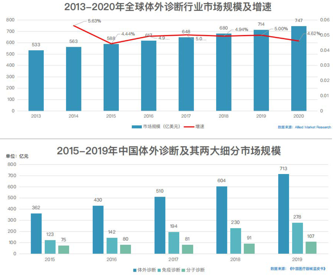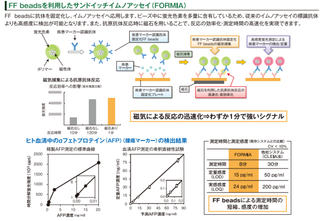 2020年全球体外诊断(IVD)市场规模747亿美元,上游核心原料约占整体市场的10%,其中生物微球等载体系统约占核心原料的25%,2020年全球IVD生物微球市场空间约为18.675亿美元,国内约为17.825亿元。其中免疫诊断市场中的国产化学发光试剂厂家对生物磁珠原料的需求最大,主要是进口为主,少量是自产或者国产。小而美的生物磁珠深刻影响IVD市场尤其免疫诊断市场的走向和发展规模。 磁珠可以与药物、蛋白质、酶、抗体或核酸结合,最开始的磁珠被广泛应用于多种体内实验,比如药物传递、磁共振成像(MRI)造影剂和热疗等。但是因为磁珠材料本身的生物相容性和细胞毒性等等因素,限制了磁珠在体内实验的应用,反而体外实验应用得到更广泛的发展,本文主要综述磁珠在体外实验的用途,尤其应用在临床市场上的各种体外诊断技术,以及学术科研领域生物分子的纯化应用,比如细胞和外泌体分离、核酸提取、生物药物的靶点鉴定及代谢性质研究、蛋白纯化与免疫层析等等。 早在上个世纪70年代初就有科学家尝试使用生物微球来分离细胞,1969年科学家Wigzell和Andersson[1]就开始利用细胞表面抗原和特异性抗体的结合性质原理,使用生物微球分离细胞,所用生物微球没有磁性,分离速度慢,效率很低,且成本高昂。1976年科学家Guesdon和Avrameas[2]研究磁性的生物微球和抗原/抗体的连接反应,并在1977年成功开发磁性固相酶免疫分析技术,为将来使用磁珠来分离细胞以及更广阔的分子生物学研究应用打下基础。所用磁珠为法国Magnogel beads(MG beads),结构为4%的聚丙烯酰胺,4%的琼脂糖和7%包裹在磁珠里面的氧化铁,磁珠表面有醋酸基团,粒径范围为50-160um,属于羧基磁珠。 1978年科学家AntoineJC等[3]首先尝试使用磁性固相酶免疫分析技术来分离小鼠和大鼠淋巴细胞,并获得成功,分离速度快,总回收率在80%-100%之间,所用磁珠同样为法国的MG beads。 1982年科学家Meier和Lagenaur等[4]使用MG beads来分离少突胶质细胞,改善了分离实验方案,提高分离效率,分离后少突胶质细胞的纯度为91.4%,不仅分离速度快,且成本大大降了下来。 生物磁珠技术发展至今,不仅磁珠本身的制造工艺,而且磁珠分离细胞的技术均已经非常成熟,目前大部分磁珠厂家均有能应用于细胞分离的产品,技术成熟且比较知名的厂家有德国Miltenyi,美国Dynabeads,德国MagSERIONbeads,法国Ademtech等,大部分厂家均可以提供已经包被对应细胞表面抗原的抗体磁珠试剂盒,使用过程简单方便,而且主要是3.0um粒径或者更大的磁珠,比如美国Dynabeads主打4.5um。 除了细胞分离,核酸提取也可以通过无磁的生物微球来进行实验,包括琼脂糖和硅胶等,但是效率同样不高,通过磁珠来提取核酸的最佳方法是在磁珠表面接入链霉亲和素,再和生物素化配体结合,通过配体捕捉DNA/RNA。1989年科学家Hultman等[6]首先使用嫁接了链霉亲和素的Dynabeads来提取核酸并测序,所用磁珠为粒径2.8um的Dynabeads。除了链霉亲和素-生物素原理,使用Protein A/G磁珠捕捉抗体-蛋白质-DNA/RNA,也是常用的方法之一。主要的厂家有美国Dynabeads,美国GE,和美国BioVision等。 现在临床检测市场上普遍使用硅基材质的羟基/羧基磁珠来进行核酸提取,方法是磁珠在某种酸碱条件下和溶液中的核酸通过疏水作用、氢键作用和静电作用等发生特异性结合,迅速从生物样品中分离核酸,有利于核酸的自动化和高通量提取。这种针对临床检测市场的核酸提取磁珠技术比较成熟,已经基本实现国产化,操作简单方便。 1990s年代日本科学家Hiroshi Handa等[7]开发FG beads,一种200nm粒径的聚苯乙烯材质的生物磁珠,可以在有机溶剂中和各种小分子或者生物大分子配体进行连接,研究这些配体的结合性质和代谢功能,主要应用于生物医药的靶点蛋白鉴定筛选和作用机理研究。 2006年科学家Hitoshi Uga等[8]用FG beads成功寻找抗癌药MTX的作用靶点并发现其抗癌机理。2010年科学家Takumi Ito等[9]用FG beads寻找镇静剂药物Thalidomide的作用靶点蛋白并弄清楚其作用机理。 这是生物磁珠需求量最高的应用项目,所根据的原理起源于科学家Guesdon和Avrameas在1977年开发的磁性固相酶免疫分析技术,主要用来开发临床体外诊断(IVD)检测技术,通过用磁珠连接特异性抗体来寻找其作用蛋白/抗原并分离纯化,最终检测蛋白/抗原数量,主要的使用技术包括磁微粒化学发光免疫分析技术(CLIA)、微流控磁敏免疫分析技术(MIA)、荧光免疫分析技术(FIA)、单分子免疫检测技术等。 CLIA凭借其灵敏度高、特异性好、自动化程度高等优势,直接检测对象是发光材料的发光性质,最终计算蛋白/抗原数量,在临床应用中迅速推广,已经成为免疫诊断的主导技术,市场占有率超过70%,国内外IVD厂家众多。随着中国社会老龄化的增长,免疫诊断市场不断增长,2019年中国免疫诊断市场规模为278亿元。欧美发达国家免疫诊断中化学发光市场占比超90%,我国目前只有80%左右,且国产化学发光试剂占比不到20%,未来五年发展潜力巨大,有望突破50%。 MIA不同于CLIA,MIA首先需要结合微流控芯片技术,成本较高,采用磁敏传感器技术,用磁珠捕捉待测蛋白抗体并固定在芯片上,直接检测对象是带磁性的磁珠本体数量,具有更高的精度以及更快的检测速度。MIA是对磁信号的检测,可以消除生物样品的干扰,具有超高的灵敏度,并可同时检测多种疾病分子的能力。MIA主要使用200nm的链霉亲和素磁珠,对磁珠的粒径均一性和稳