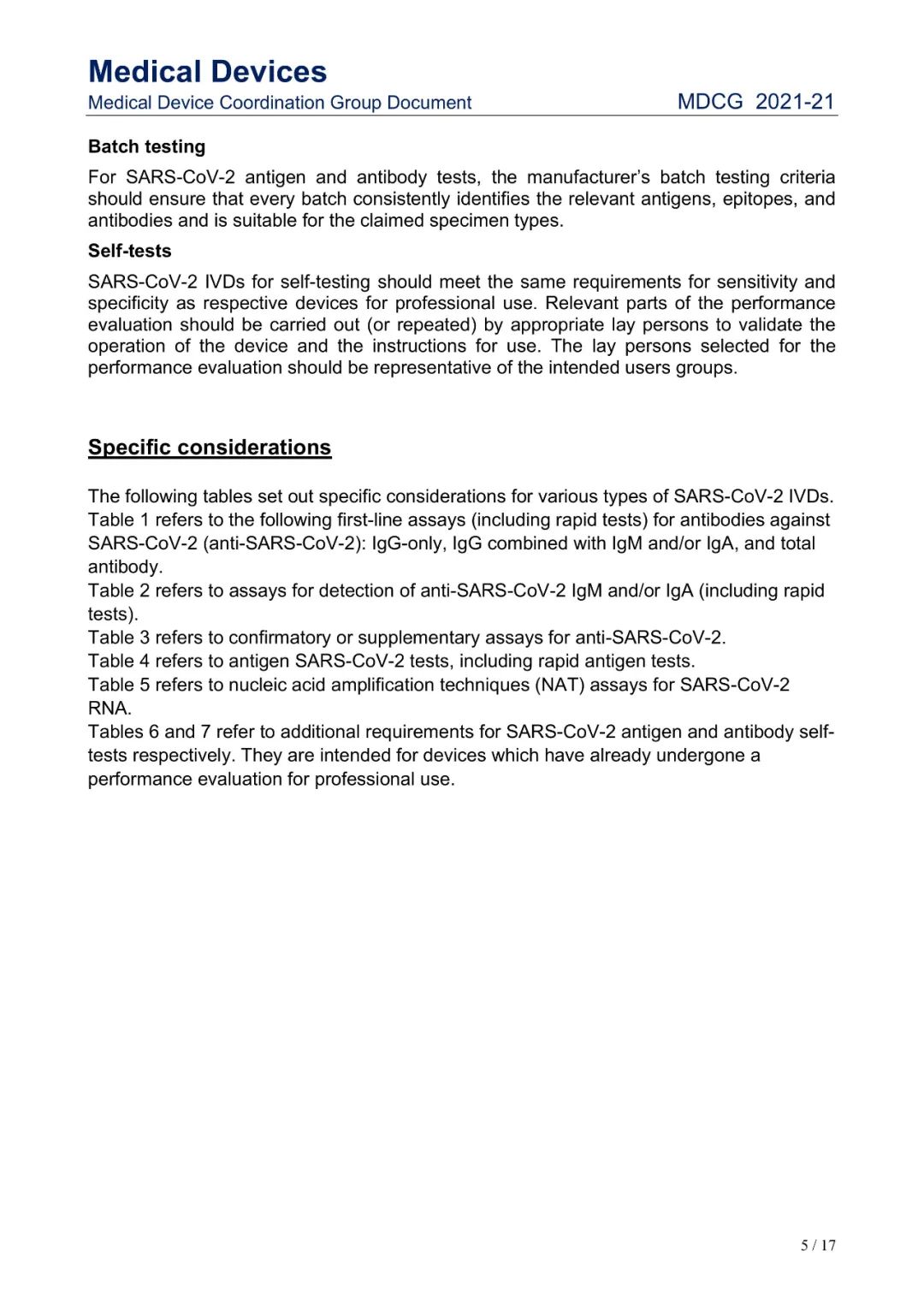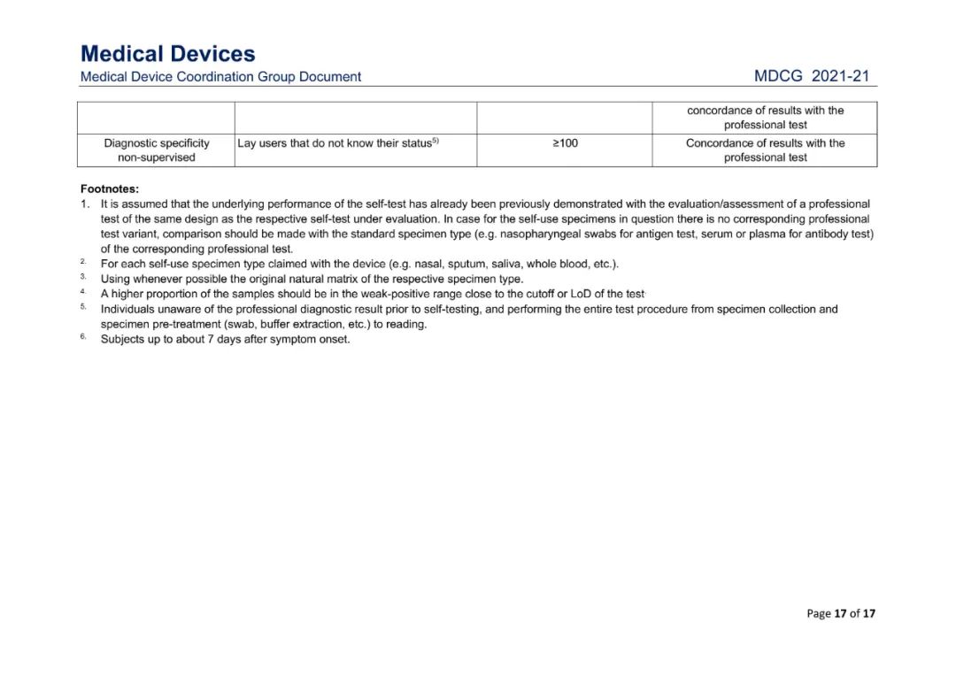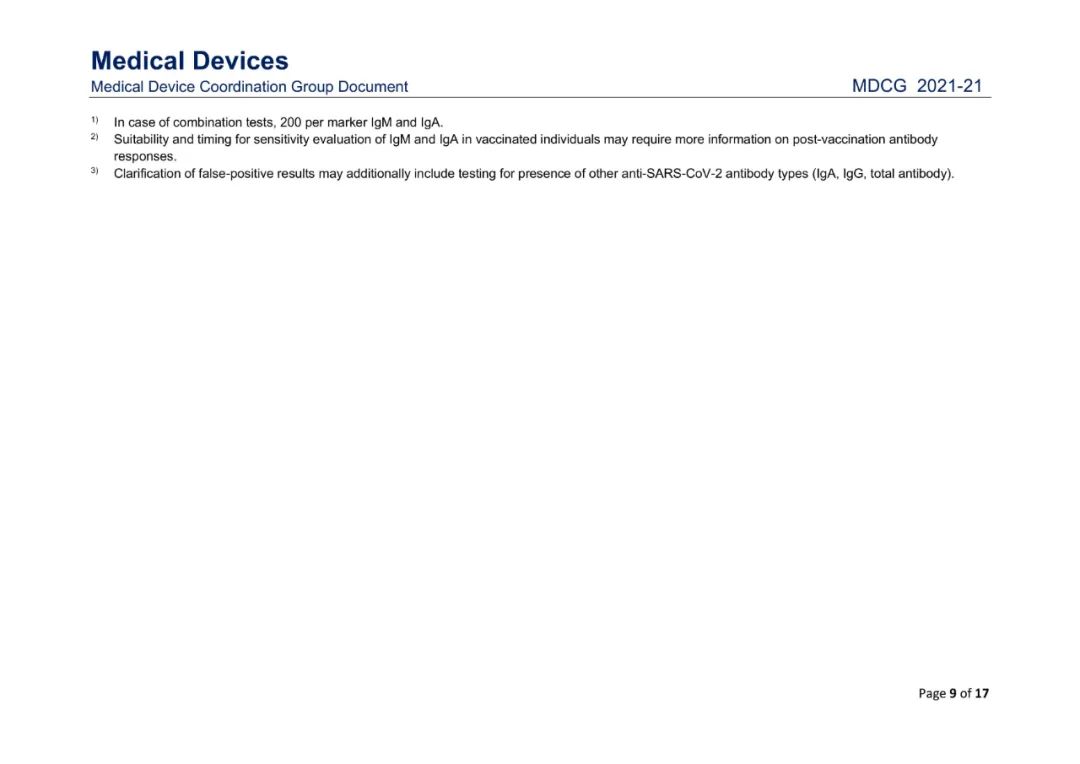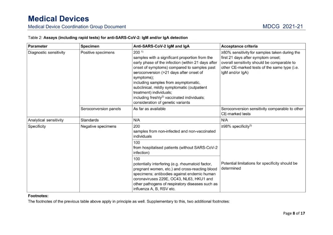 Small Business: This is defined as havinggross receipts or sales of no more than $100 million for the most recent taxyear. 2021年8月3日,欧盟医疗器械协调小组MDCG发布了SARS-CoV-2体外诊断器械的性能评估指南MDCG 2021-21。