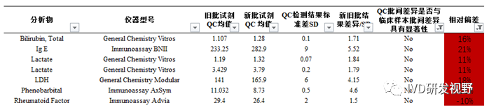 方法:获得试剂批更换验证时检测质控物和临床样本的结果,这些结果来自18种质控物、661个不同试剂批,1483个次质控物检测,82种分析物,7种仪器。通过双样本异方差t检验分析更换试剂批检测质控物的批间差异和更换试剂批检测临床样本的批间差异是否具有显著性。 结果:总体上,40.9%的质控物批间差异与临床样本批间差异具有显著性。当质控物批间差异小于1SD(83.1%)时,37.7%的质控物批间差异与临床样本批间差异具有显著性。当质控物批间差异大于1SD(16.9)时,57.0%的质控物批间差异与临床样本批间差异具有显著性。 结论:不同批试剂检测质控物结果显示不具有互通性的比例较高40.9%,质控物不应该用于评价试剂批更换前后检测临床样本的一致性。 文章的内容主要是对上述方法和结果的详细分析,立场类似临床检验中心监管机构,旨在强调和要求使用质控物的客户和能力验证组织者要对该差异引起重视。否则会对新批次试剂是否可应用造成错误判断,或是对能力验证结果未进行试剂批次分组统计而对验证结果做出错误判断。 3.统计分析案例 以LDL胆固醇测试结果分析为例。数据包括旧批次试剂测试质控品的10个结果、新批次试剂测试质控品的10个结果以及新旧批次测试7个临床样本的结果。通过分析这些数据,确定质控结果的批间差异是否和临床样本批间差异具有统计学意义。计算以标准差(SDI)为单位时质控结果的批间差异大小。 4.新旧试剂批检测质控物的差异 通过质控数据,了解不同方法学原理、项目、厂家的试剂产品批间差异。 ③质控批间差异在±10%以内,但是不代表临床样本批间差异在±10%以内。 ④质控批间差异在±10%以内,同时代表临床样本批间差异在±10%以内。 |