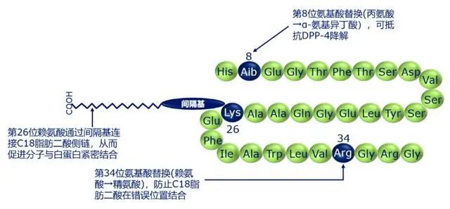 8月14日,诺和诺德为其GLP-1周制剂诺和泰®(司美格鲁肽注射液)举办了全国上市会。北京大学人民医院内分泌科主任纪立农教授、解放军总医院内分泌科主任母义明教授、诺和诺德全球高级副总裁兼大中国区总裁周霞萍、诺和诺德中国医药部和质量部企业副总裁张克洲参加了会议,分享了以司美格鲁肽为代表的GLP-1类药物对中国糖尿病综合管理带来的改变,以及糖尿病治疗最新理念与趋势、创新方向。 中国是糖尿病大国,患病人数超过1.298亿[1],其中仅有15.8%血糖控制达标[2]。糖尿病患者也面临心血管并发症高的难题,中国2型糖尿病患者中合并心血管疾病的占大约1/3[3]。另有研究显示,超过50%的2型糖尿病患者合并超重/肥胖,近50%合并血脂异常,接近2/3合并高血压[4]。由于糖尿病患者常合并多种心血管危险因素,导至综合管理难度加大,2型糖尿病患者的临床治疗也需要血糖控制与心血管结局 “两手抓”。 司美格鲁肽是国内第一个用于成人2型糖尿病患者的血糖控制、降低伴有心血管疾病的2型糖尿病患者的主要心血管不良事件(心血管死亡、非致死性心肌梗死或非致死性卒中)风险双适应症的GLP-1周制剂,其上市为国内糖尿病患者提供了新的治疗选择。 司美格鲁肽是一种长效胰高血糖素样肽-1受体(GLP-1R)激动剂,其分子结构是以天然人GLP-1分子为基础改造而来,替换了第8位(丙氨酸→α-氨基异丁酸)和第34位氨基酸(赖氨酸→精氨酸),同时在第26位赖氨酸通过间隔基连接C18脂肪二酸侧链。经过人工改造获得的司美格鲁肽可抵抗二肽基肽酶4(DPP-4)裂解,与白蛋白紧密结合、体内半衰期显著延长至7天,实现每周给药1次。另外,司美格鲁肽保留了高达94%的人GLP-1氨基酸序列同源性结构特征,具有较好的安全性。