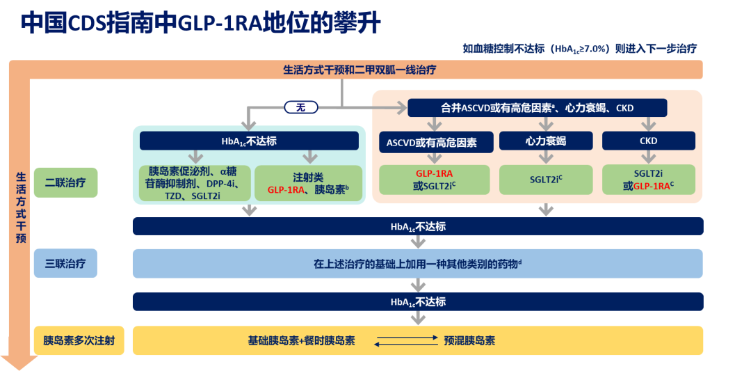 除了降糖、减重、护心,司美格鲁肽还获得了对肾脏结局有益的证据,同时针对NASH、阿尔茨海默病的适应症开发也在紧锣密鼓地进行。糖尿病本质上是一组由多病因引起的以慢性高血糖为特征的终身性代谢性疾病,以司美格鲁肽为代表的GLP-1药物也凭借越来越扎实的糖尿病临床研究证据以及对机体多个系统的多重获益证据和潜力得到全球多个国家权威指南的一致推荐,尤其是对于合并心血管疾病或心血管高风险的2型糖尿病患者,GLP-1RA药物的重要治疗地位得到明确。