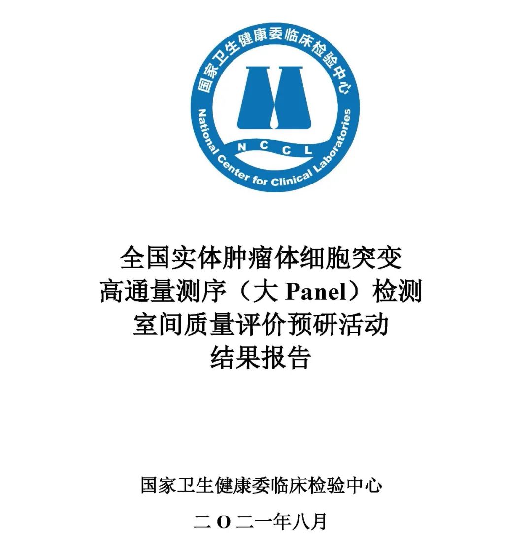2021年8月9日,国家卫生健康委临床检验中心(NCCL)公布了"2021年全国实体肿瘤体细胞突变高通量测序大Panel检测室间质量评价预研"活动结果。