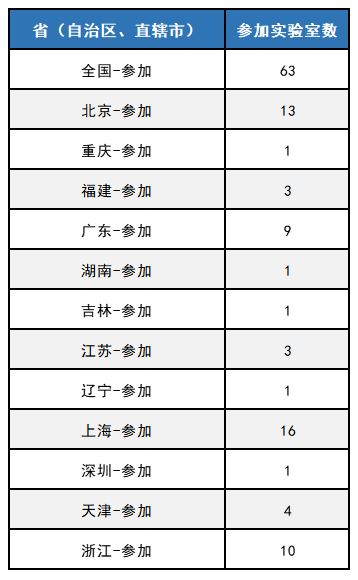 表:参加实验室分布情况