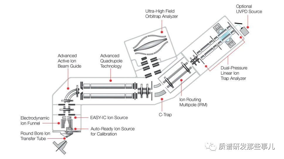 2021年3月,沃特世还推出了采用SmartMS技术的ACQUITY RDa飞行时间质谱检测器,提升了小分子分析便捷度与可靠性,这款精确质量数检测器专为制药、学术研究、食品和法医学应用中的小分子分析而打造,可以迅速部署并投入使用,助力分析人员在多种应用中更快做出明智决策。ACQUITY RDa检测器从仪器设置到结果生成的各个环节都以易用性为目标进行设计,拥有直观的系统健康状态检查功能并采用以结果为导向的专用工作流程。RDa检测器搭载简便的一键式启动功能,可有效减少培训需求、缩短停机时间,确保得到一致、可重现的结果。 Thermo Fisher赛默飞 | Orbitrap IQ-X Tribrid2021年6月,Thermo推出了Orbitrap IQ-X Tribrid三合一超高分辨质谱仪,专为下一代小分子分析而设计,只需最少的工作量即可进行全面的未知分析物鉴定。使用即时智能采集和实时资源库搜索功能,可提高覆盖范围和通量,并通过自动化设置校准功能尽享无需手动操作设置的乐趣。藐视同行的1M分辨率,更精准未知分析物及同位素鉴定;多项裂解技术,即碰撞诱导解离(CID)、高能碰撞解离(HCD)和可选紫外光解离(UVPD),解决脂质组学中类似化合物的碎片不足,提供脂质双键定位,特异性葡萄糖醛酸化位点,互补碎片化结构配位信息; EASY-IC 离子源利用第二离子源生成特定的校准物离子,将仪器的质量准确度实时调整到小于 1 ppm。