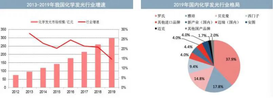 公开资料显示,以化学发光为主的免疫诊断领域,由于技术推出时间靠后、技术壁垒较高,当前仍由进口品牌垄断,其中四家跨国企业罗氏、雅培、贝克曼、西门子合计市场占比超过80%;五家国内企业新产业、安图、迈瑞、迈克、亚辉龙2019年合计占比预计在16%,2020年占比预计在20%。据中信建投研报预计,未来3-5年国产化学发光诊断市场规模增长至400亿元。